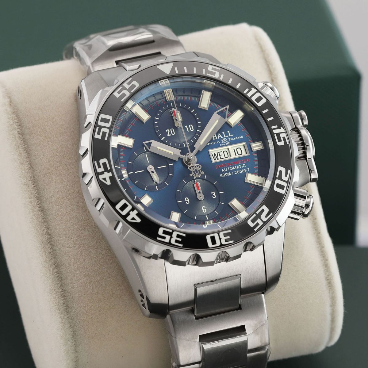 Movement: Powered by a Ball caliber RR1402-C (base ETA 7750), COSC Chronometer certified, beats at 28,800 vph (4Hz), contains 25 jewels and has a power reserve of +/- 48 hours.