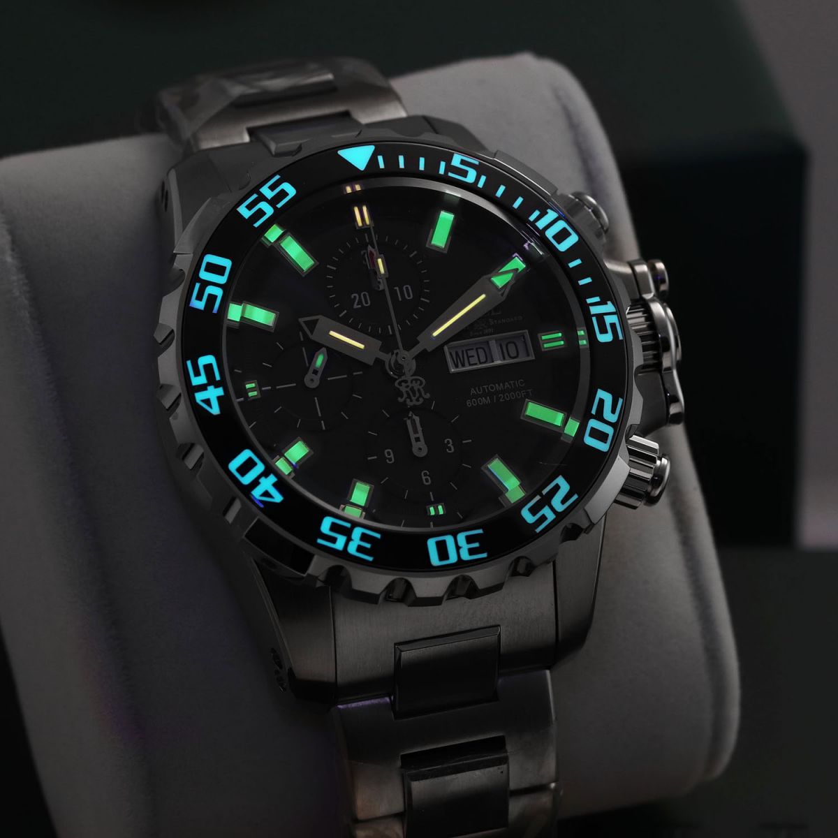 • Bezel with Super LumiNova luminous diving scale.