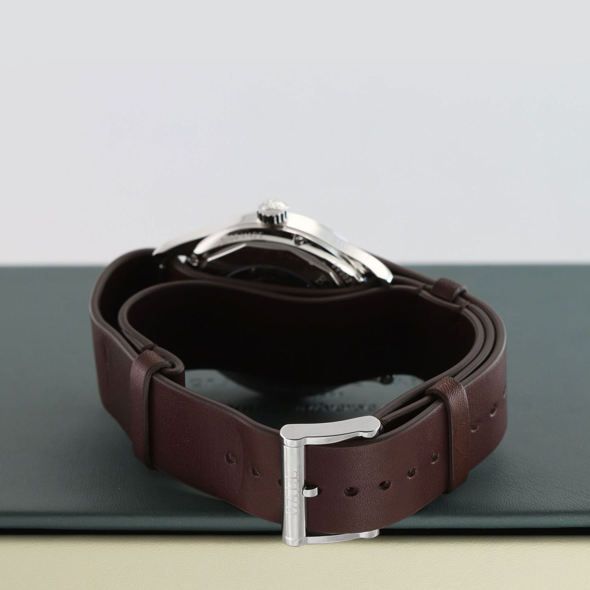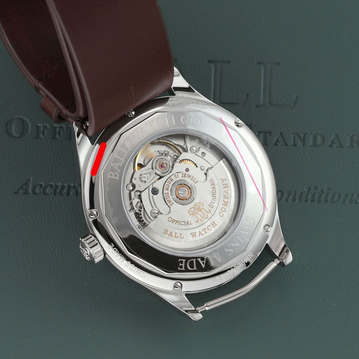 Strap: Fitted on its original BALL Watch NATO style brown calfskin leather strap with a stainless steel tang buckle. The strap is brand new & unworn with its full wear lifespan remaining.