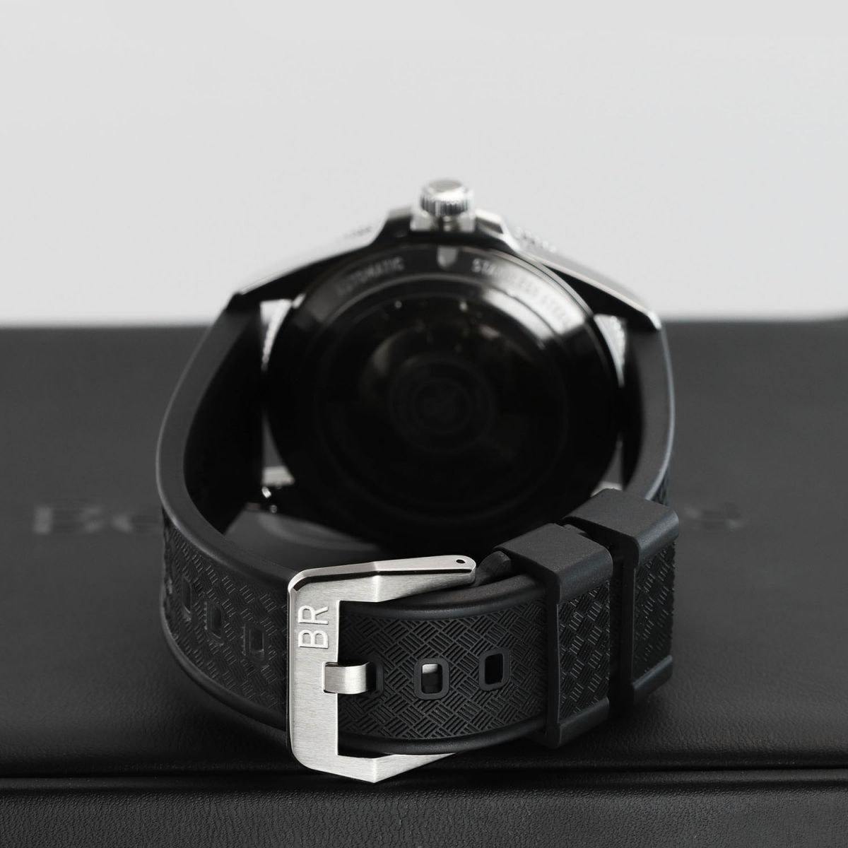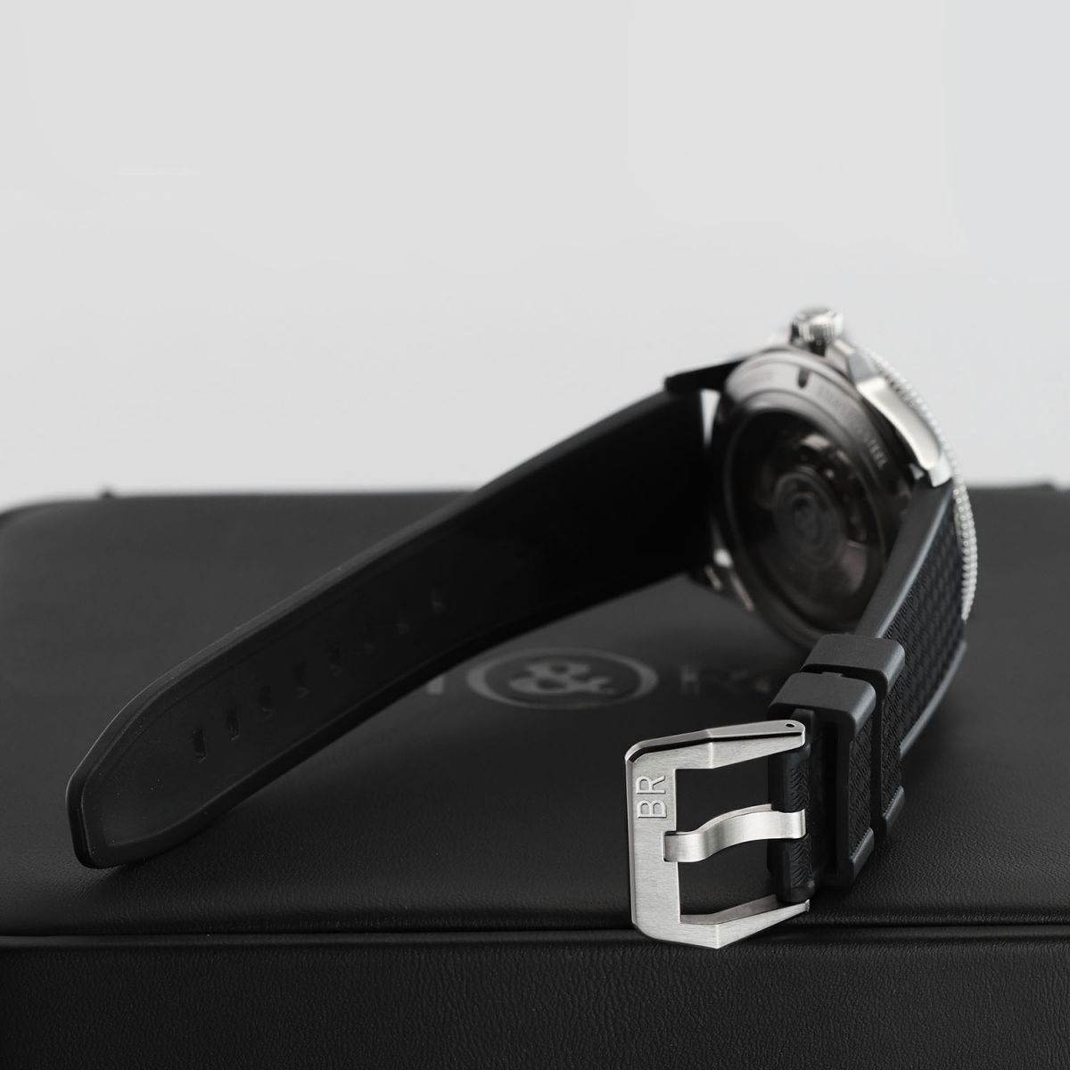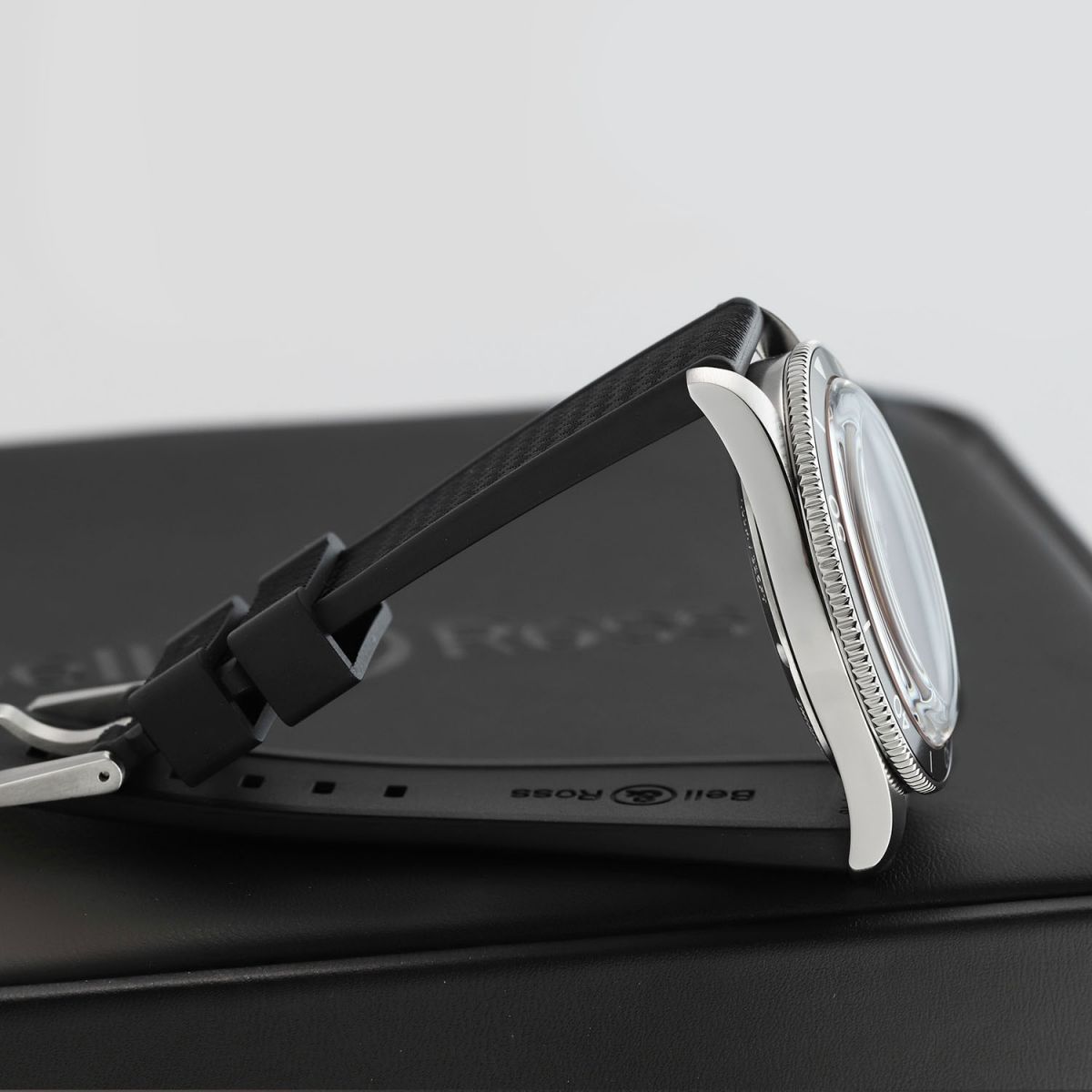 - Fitted on its original Bell & Ross black rubber strap with a stainless steel tang clasp. The strap is in excellent new new condition with the vast majority of its wear lifespan remaining.