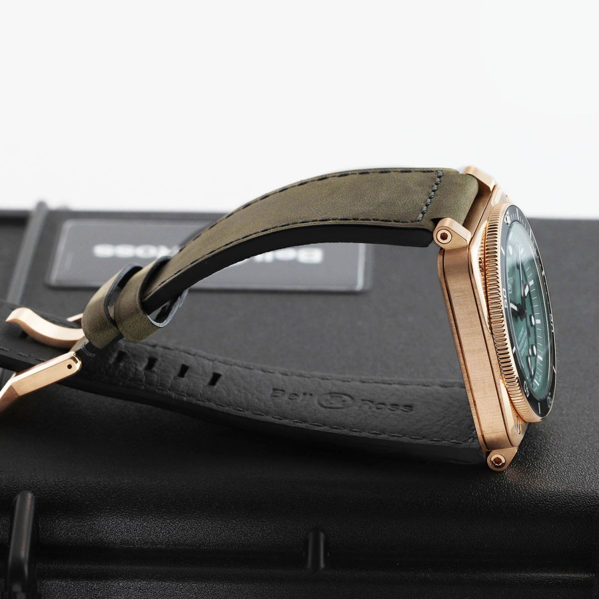 - Fitted on its original Bell & Ross green raw-hide leather strap with a bronze tang buckle. The is in new & unworn condition with the its full wear lifespan remaining.