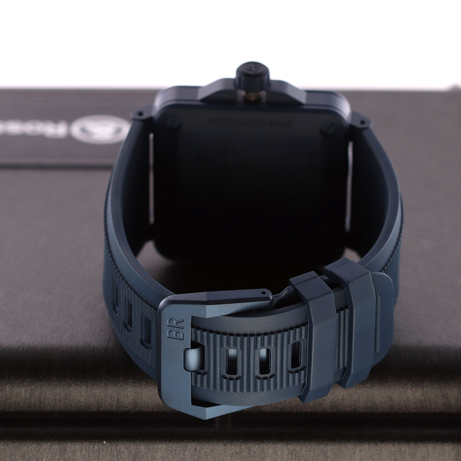 - Fitted on its original Bell & Ross blue rubber strap with a blue PVD coated stainless steel tang buckle. This strap is unworn in new condition with its full wear lifespan remaining.