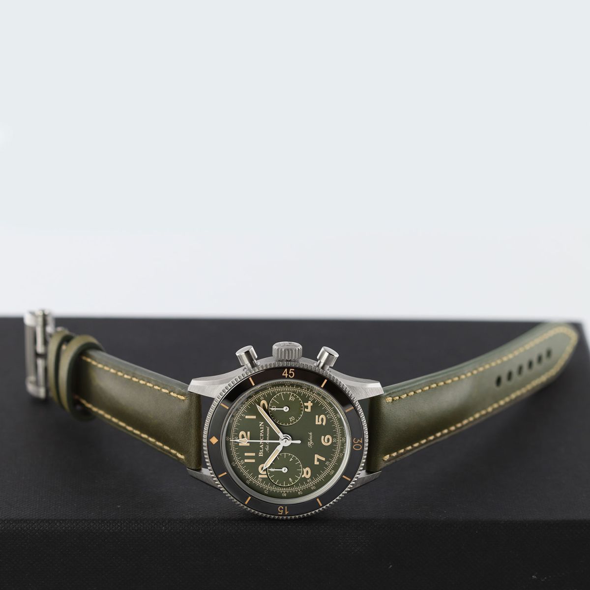 Strap: Fitted on its original Blancpain green calfskin leather strap with a push-button deployant buckle. The strap is new & unworn with its full wear lifespan remaining.