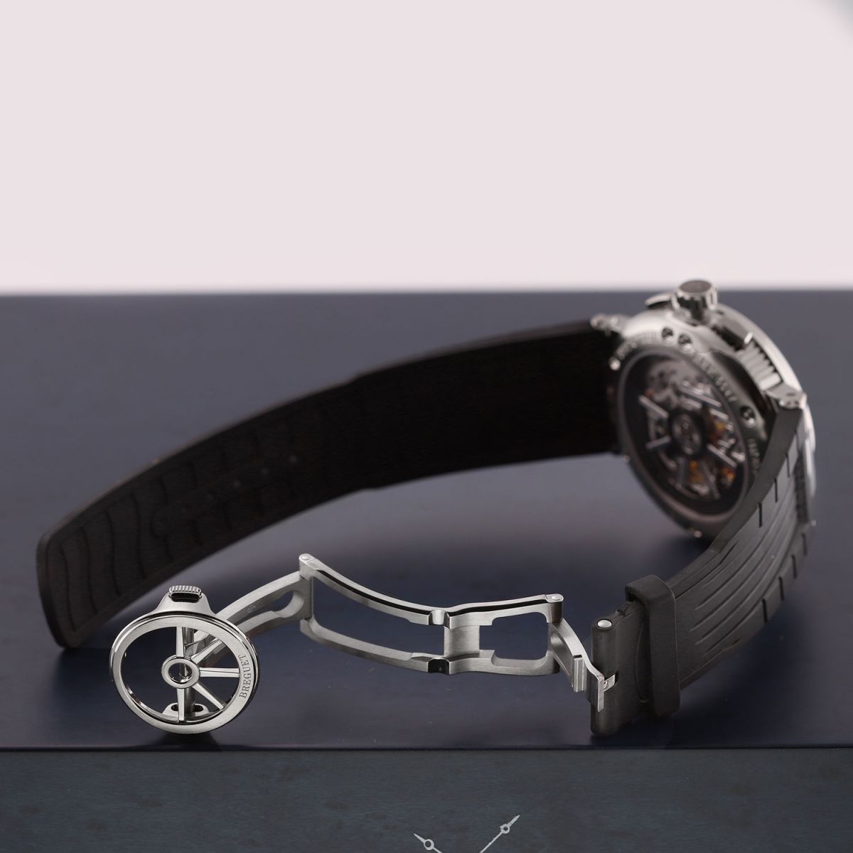 Strap: Fitted on its original Breguet black rubber strap with a titanium push-button deployant buckle. The rubber strap is in excellent, near new condition with its full wear lifespan remaining.