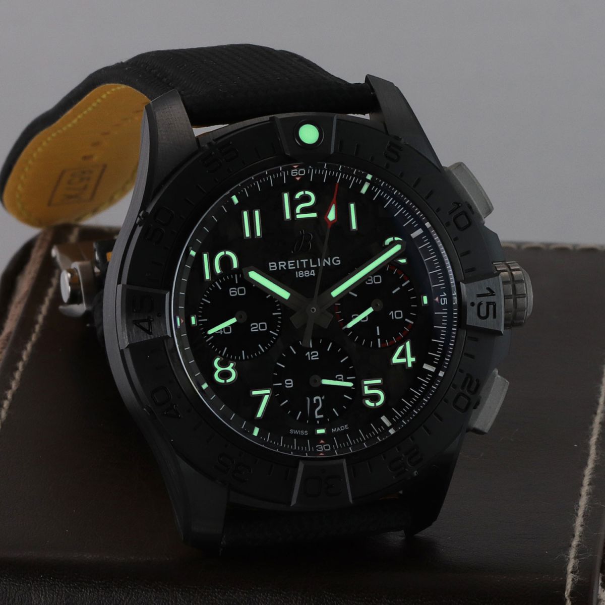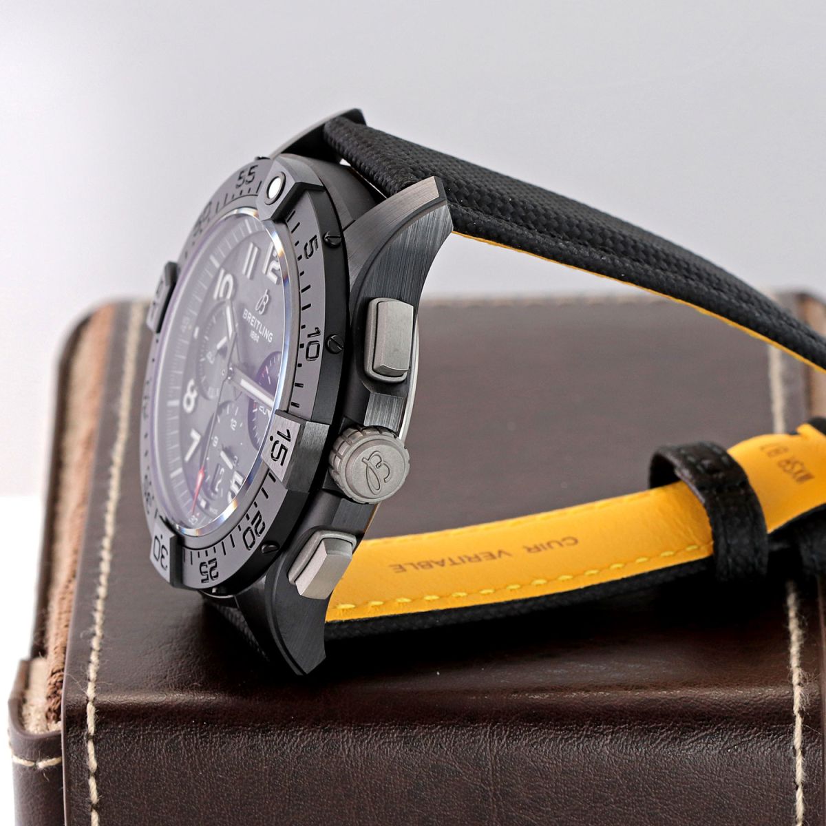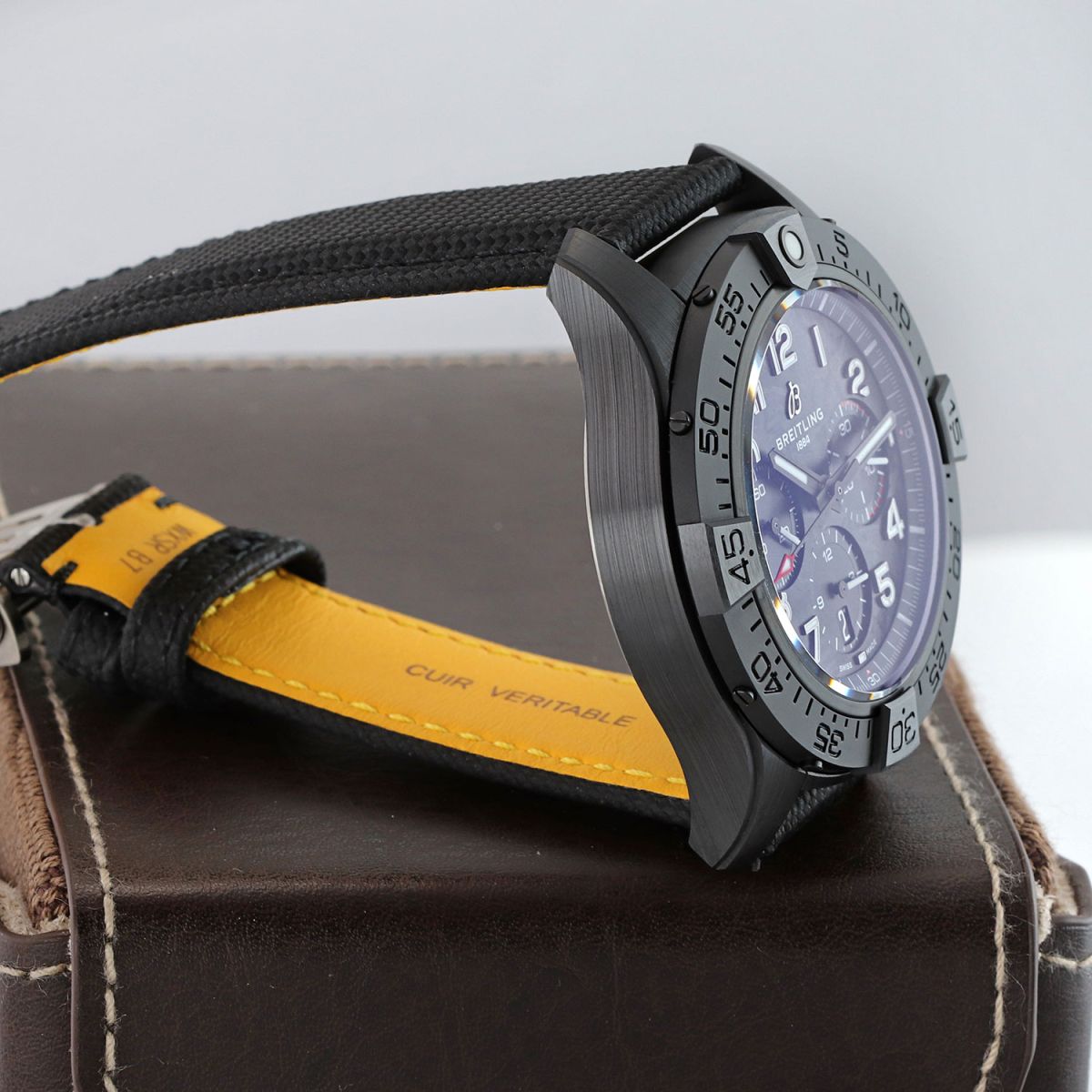 Strap: Fitted on its original Breitling black calfskin leather strap with a titanium push-button deployant buckle. The original owner claims to have worn the watch on a different strap, never to have worn the original Breitling strap & based on the condition we do believe him. The strap is in new & unworn condition with its full wear lifespan remaining.