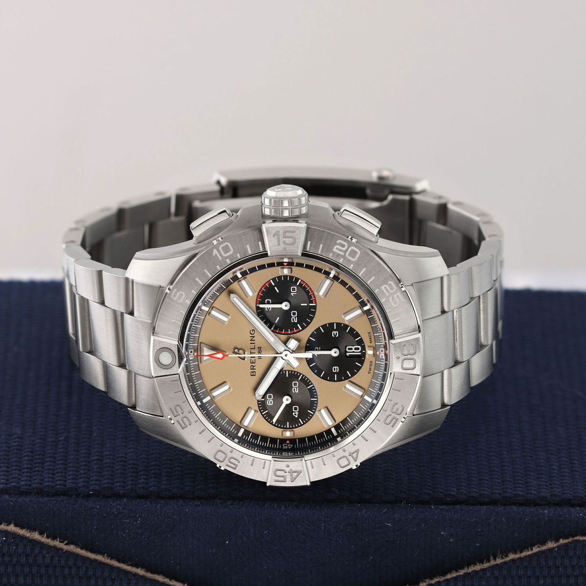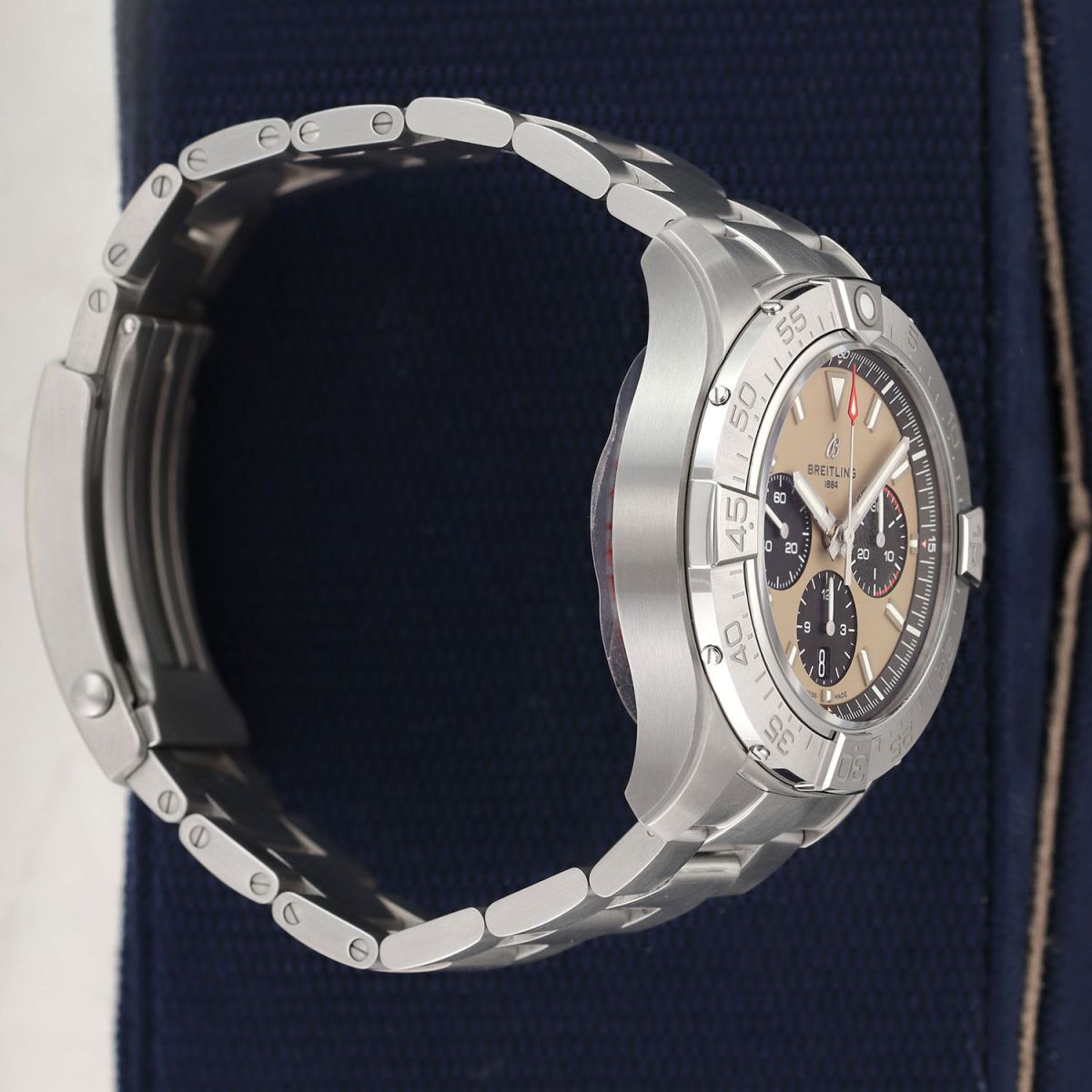 Bracelet: Fitted on its original Breitling brushed stainless steel bracelet with a safety locking deployant clasp. The bracelet is fully linked & will fit up to a 8.25" wrist.