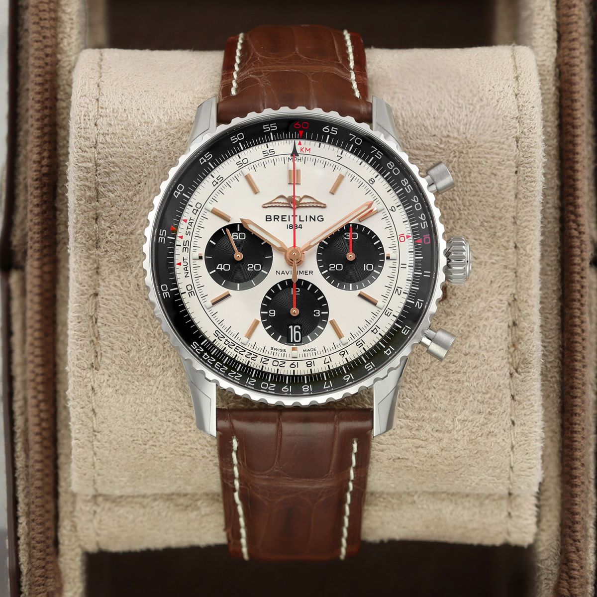 - Fitted on its original Breitling brown alligator leather strap with contrasting off-white stitching & a stainless steel push button deployant clasp. The strap is unworn, in new condition with its full wear lifespan remaining.