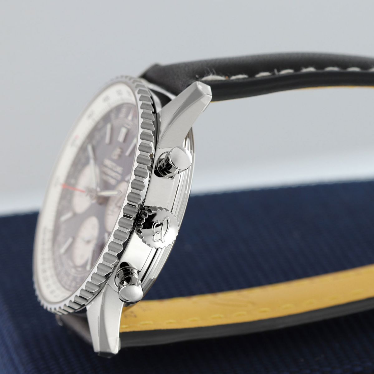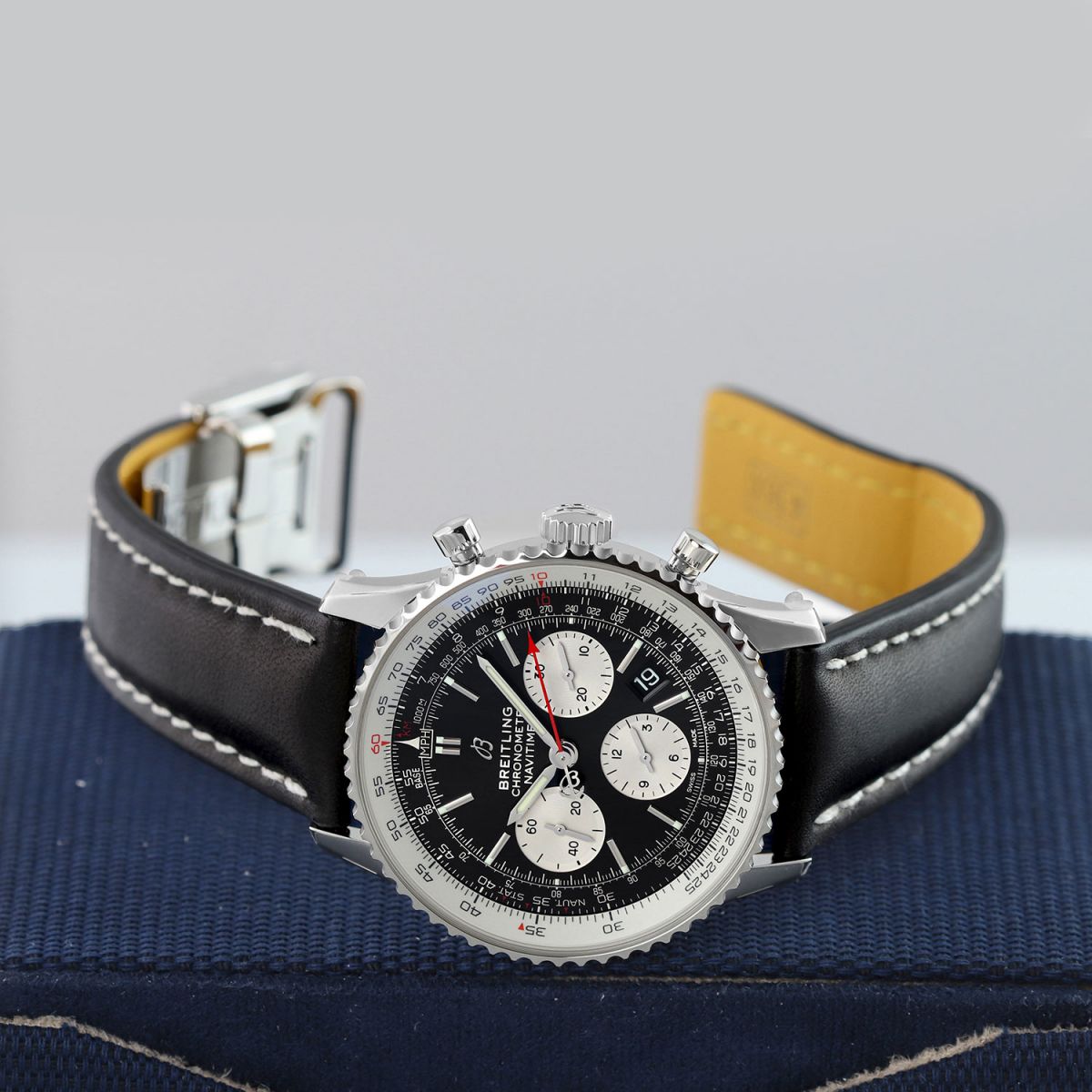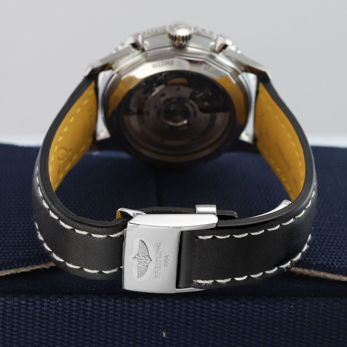 Strap: Fitted on its original Breitling black calfskin leather strap with a stainless steel deployant buckle. The strap is unworn and in new condition with its full wear lifespan remaining.