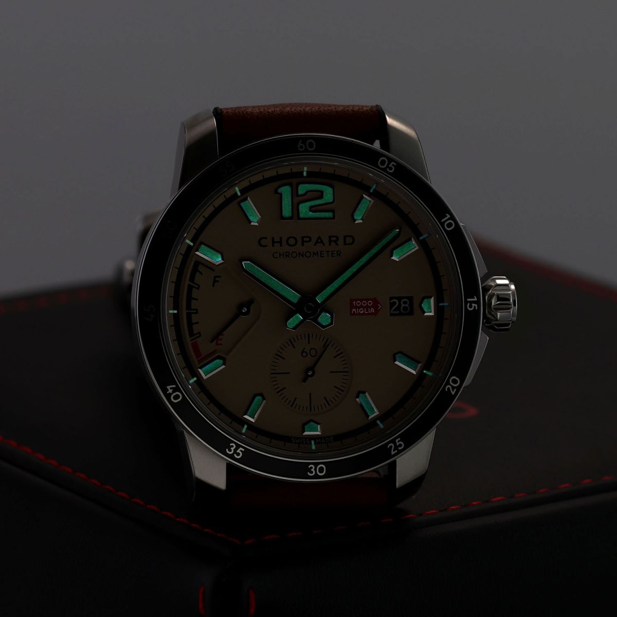 This Chopard 1000 Miglia Safari GMT & BMC celebrates both GMT Magazine’s 25th anniversary and its partnership with the Bonmont Motors Club (BMC). Limited edition of only 25 pieces worldwide. The case back is engraved GMT 25TH ANNIVERSARY & BMC - LIMITED EDITION 25