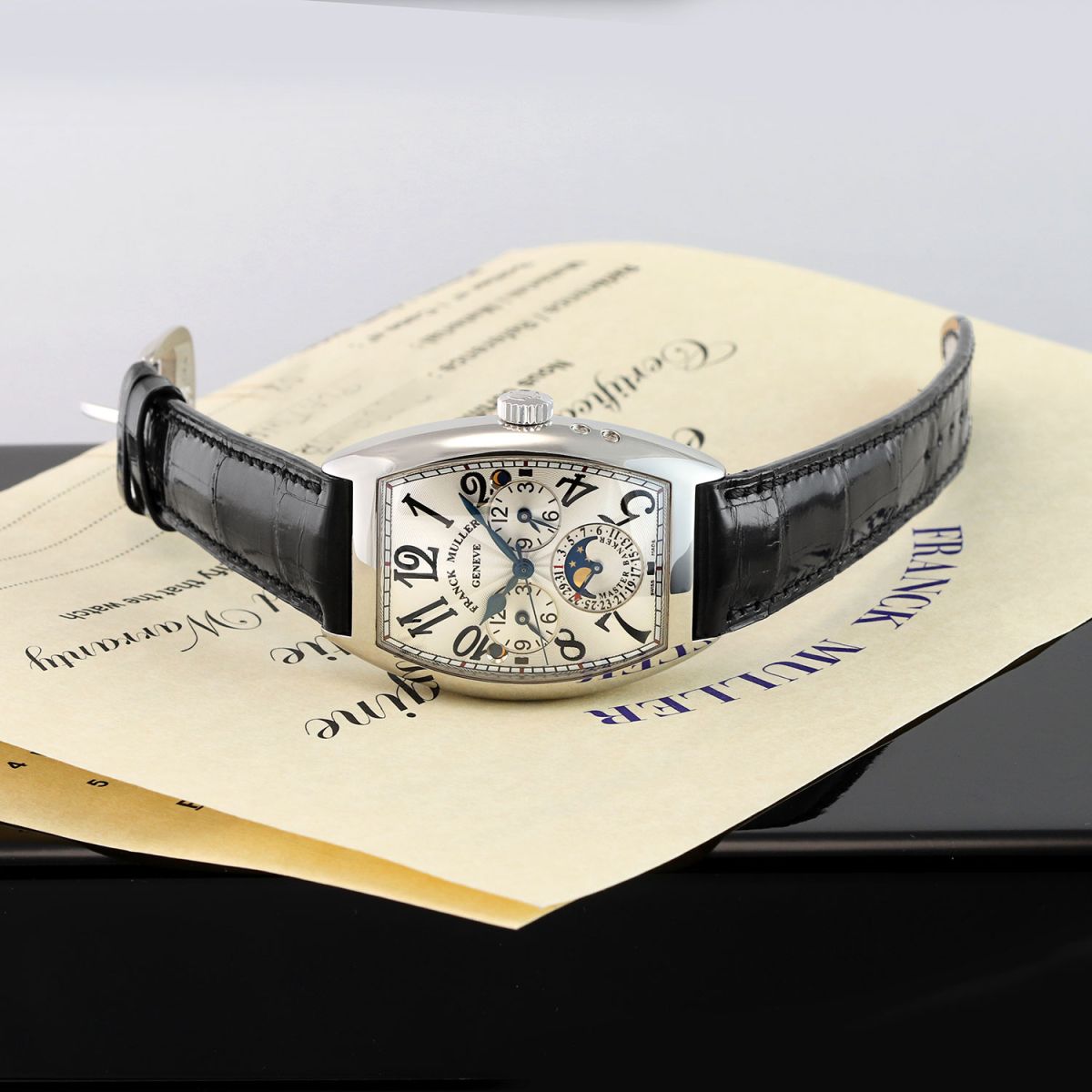 Strap: Fitted on its original Franck Muller black alligator leather strap & a solid platinum tang buckle. The strap is unworn, in new condition, with its full wear lifespan remaining.