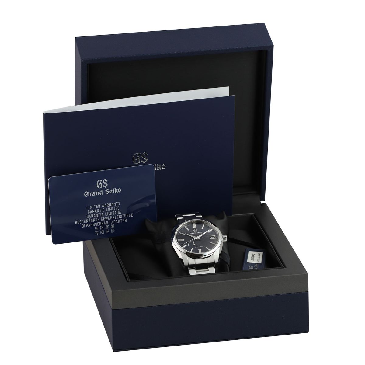 Case: Brushed & polished stainless steel case. Dark deep midnight blue dial with a very fin sunray finish. Brushed & polished faceted hour & minute hands. Polished central seconds hand. Applied brushed & polished faceted index hour markers. Fine printed minutes/seconds track. Date window at 3 o'clock.