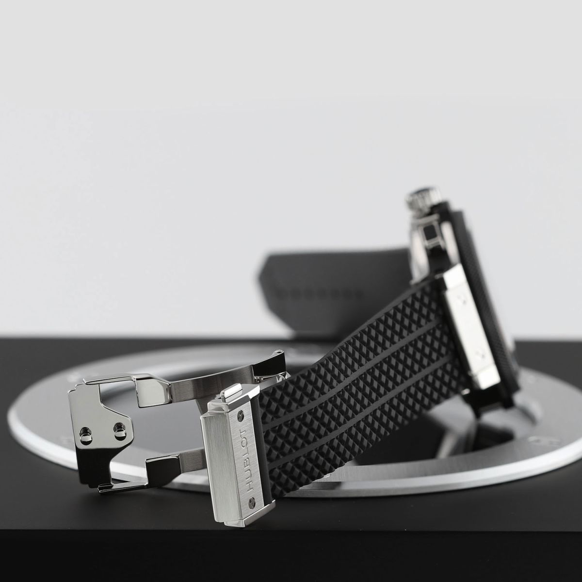 Strap: Fitted on its original Hublot black rubber with a push-button stainless steel & black ceramic deployant buckle. The strap is brand new, crisp & unworn with its full wear lifespan remaining.