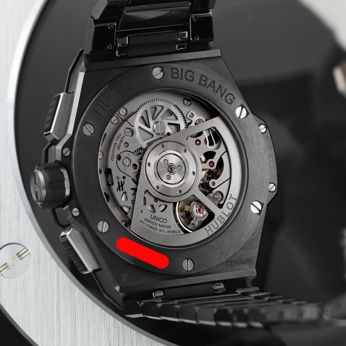 Movement: Powered by a Hublot in-house UNICO caliber HUB1280, beats at 28,800 vph (4hz), contains 43 jewels & has an impressive 3 day (72 hour) power reserve.