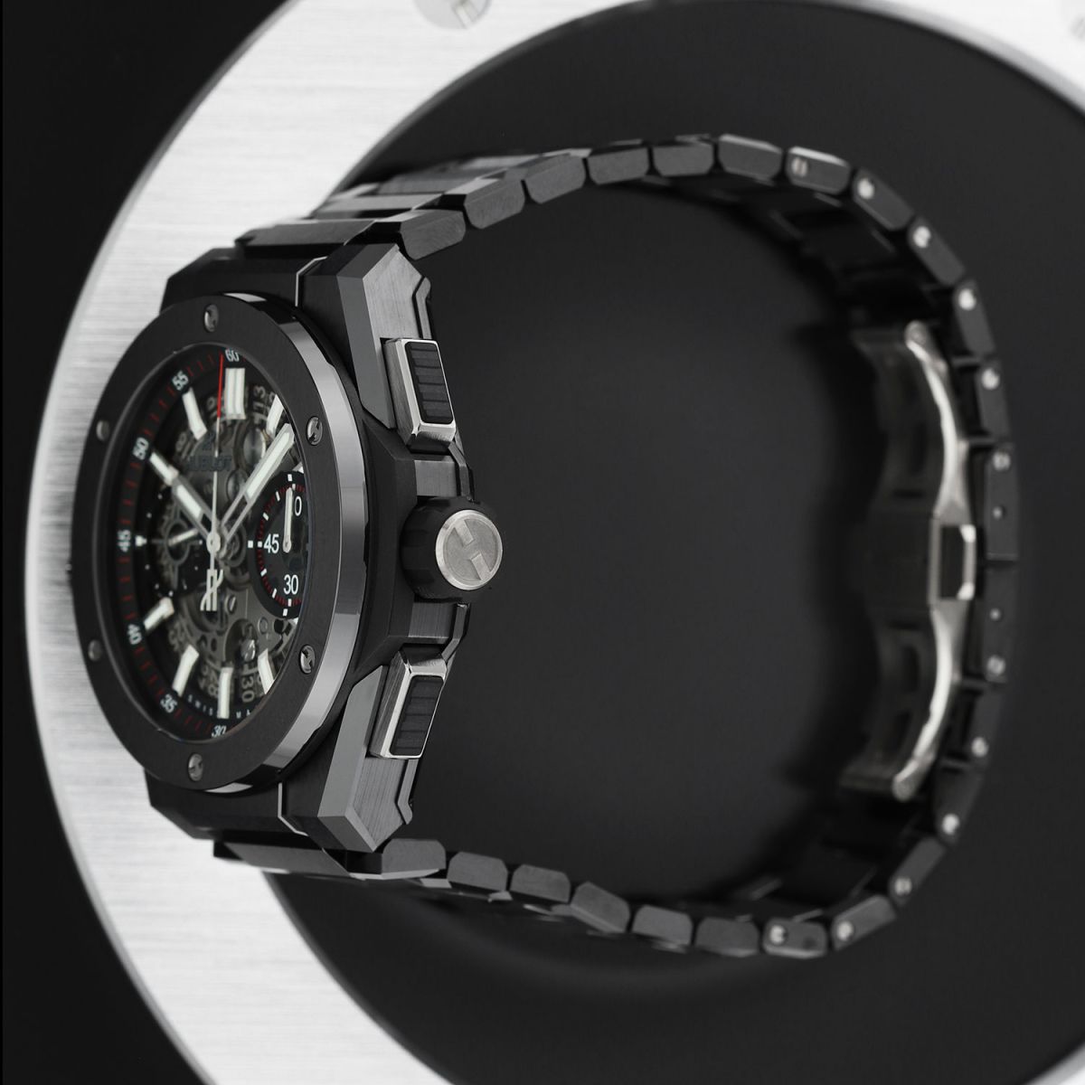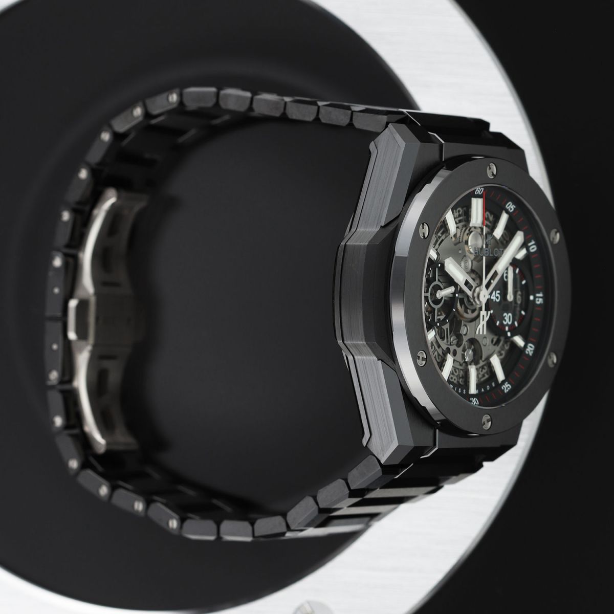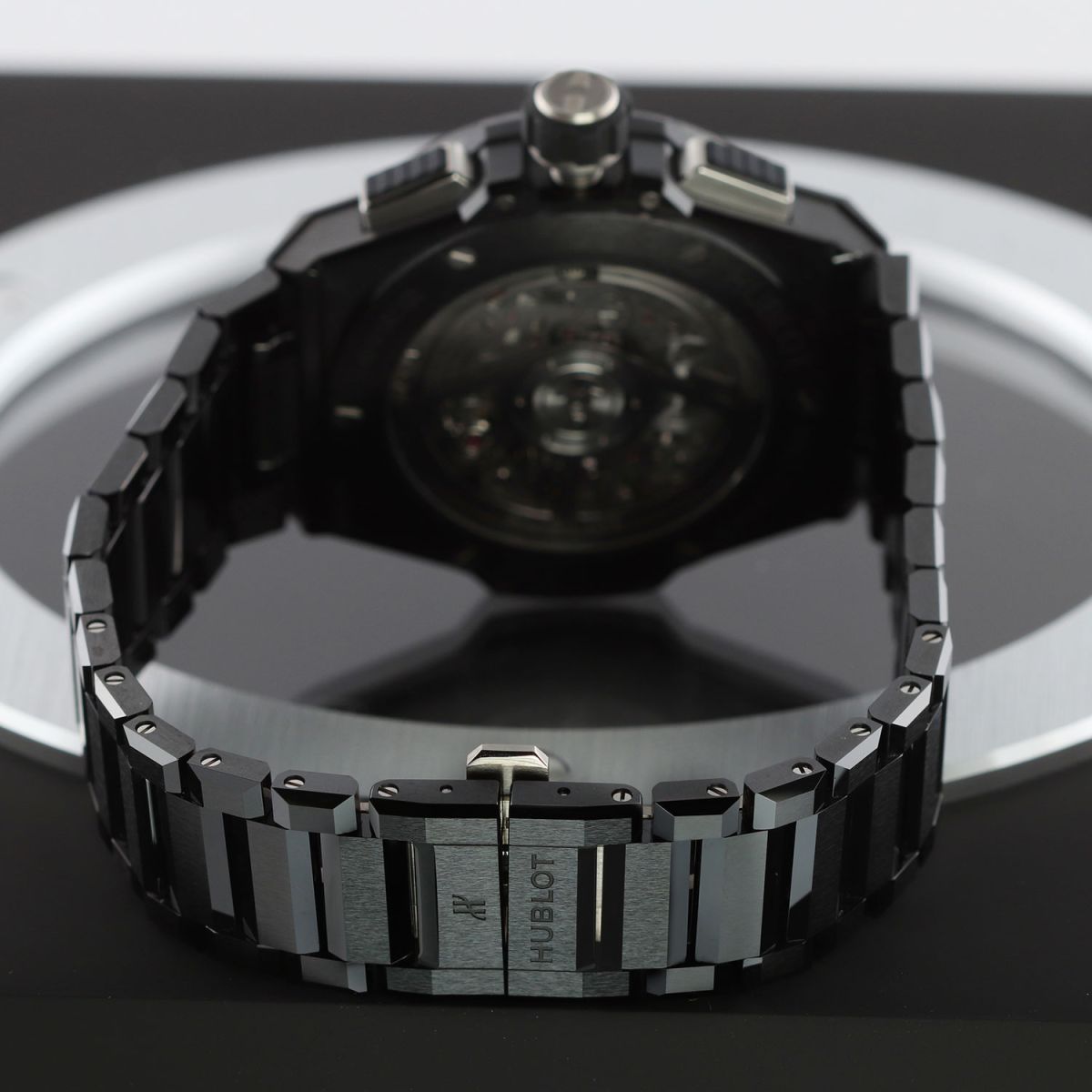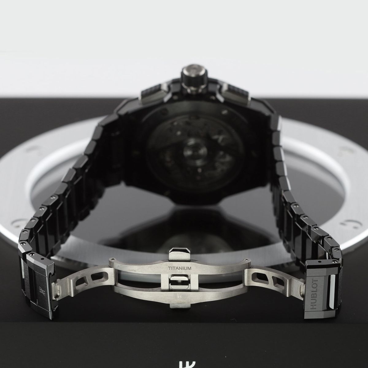 Bracelet: Fitted on its Hublot original brushed & polished black ceramic bracelet with push-button titanium hidden folding clasp. The bracelet is fully linked & will fit up to a 8.25" wrist.