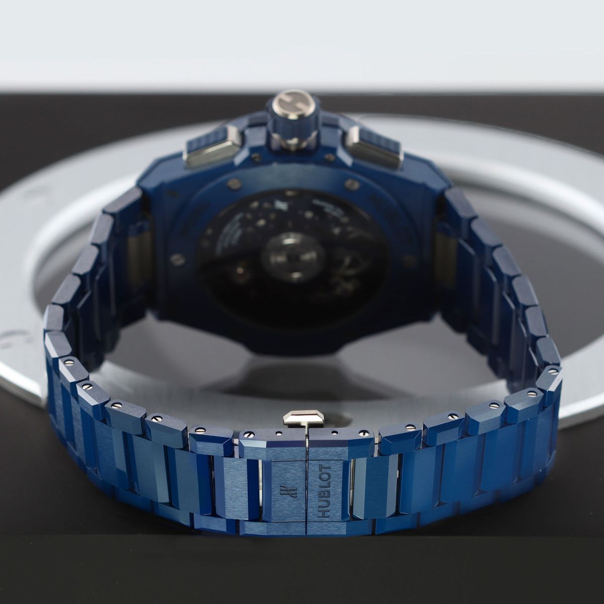 Bracelet: Fitted on its Hublot original brushed & polished blue ceramic bracelet with push-button titanium hidden folding clasp. The bracelet is fully linked & will fit up to a 8.25" wrist.