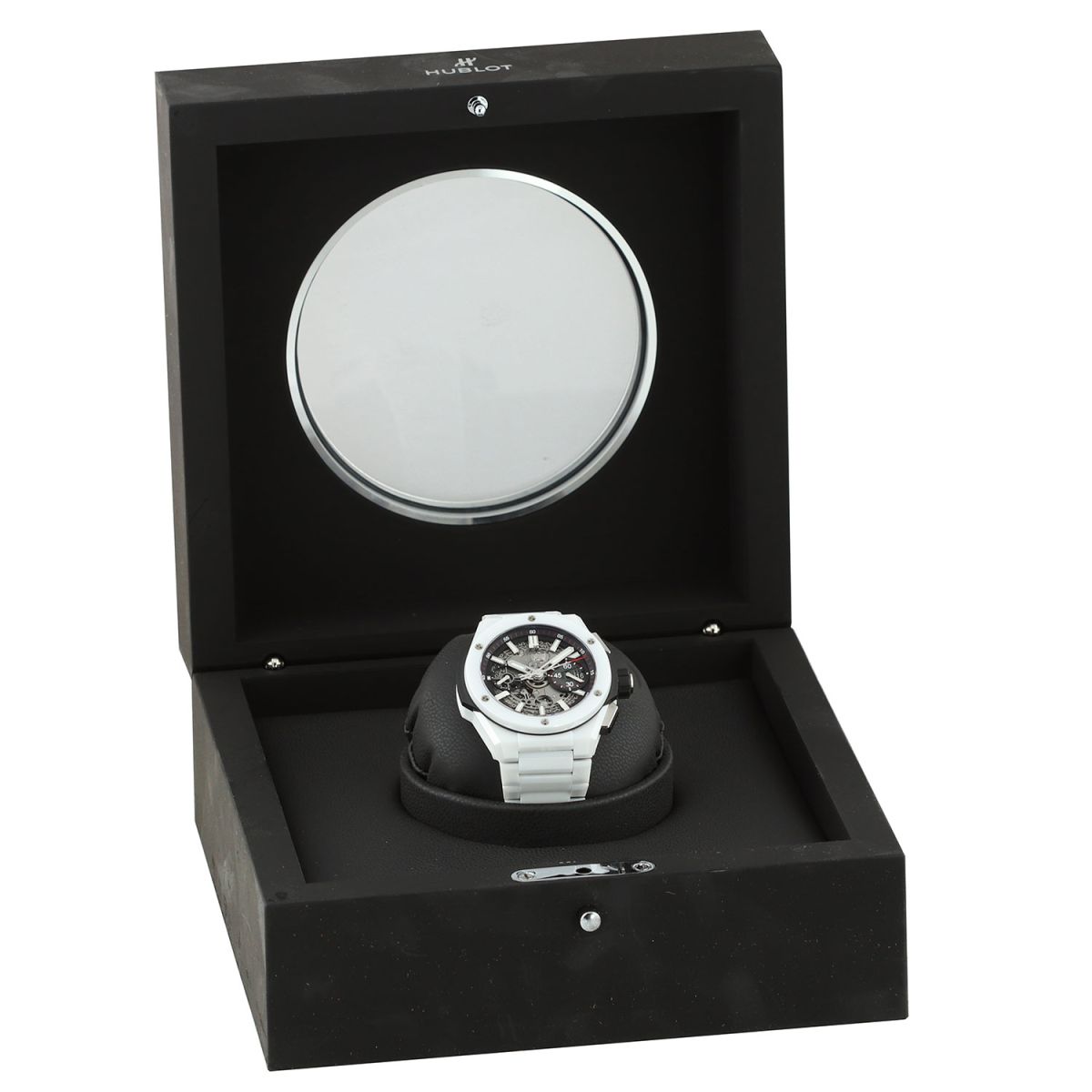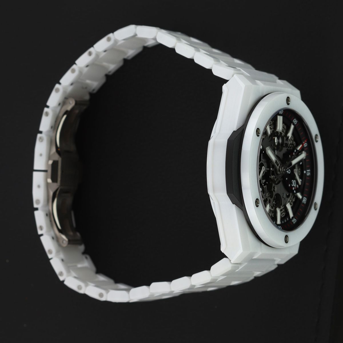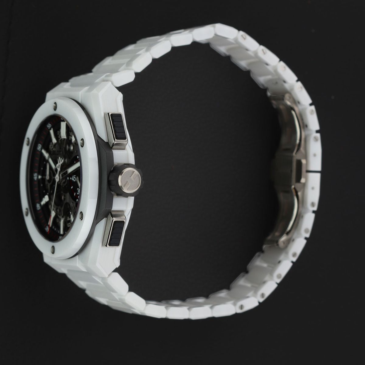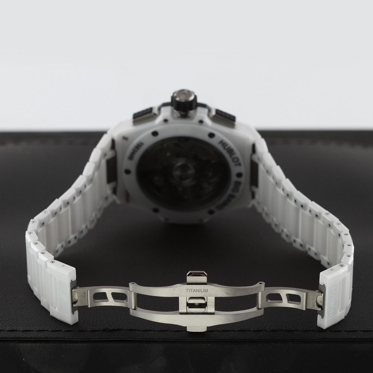 Bracelet: Fitted on its Hublot original brushed & polished white ceramic bracelet with push-button titanium hidden folding clasp. The bracelet is fully linked & will fit up to a 8.25" wrist.