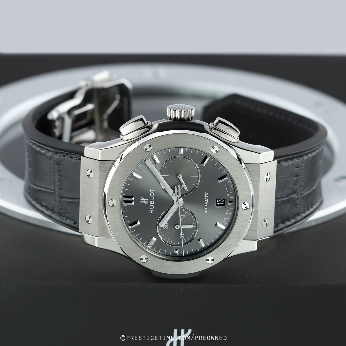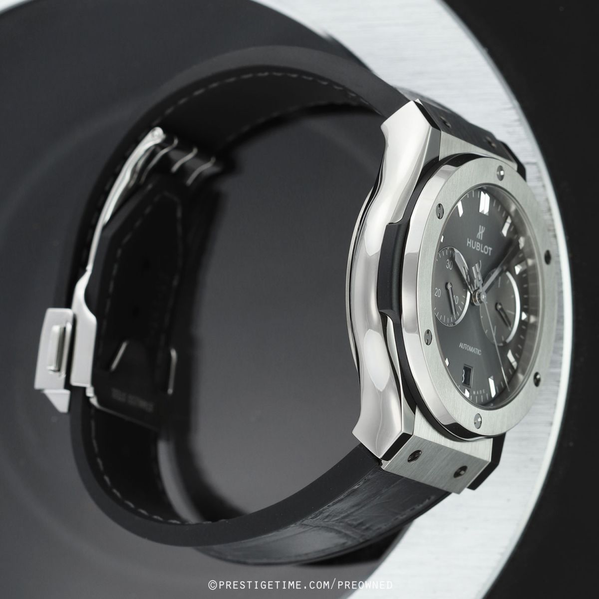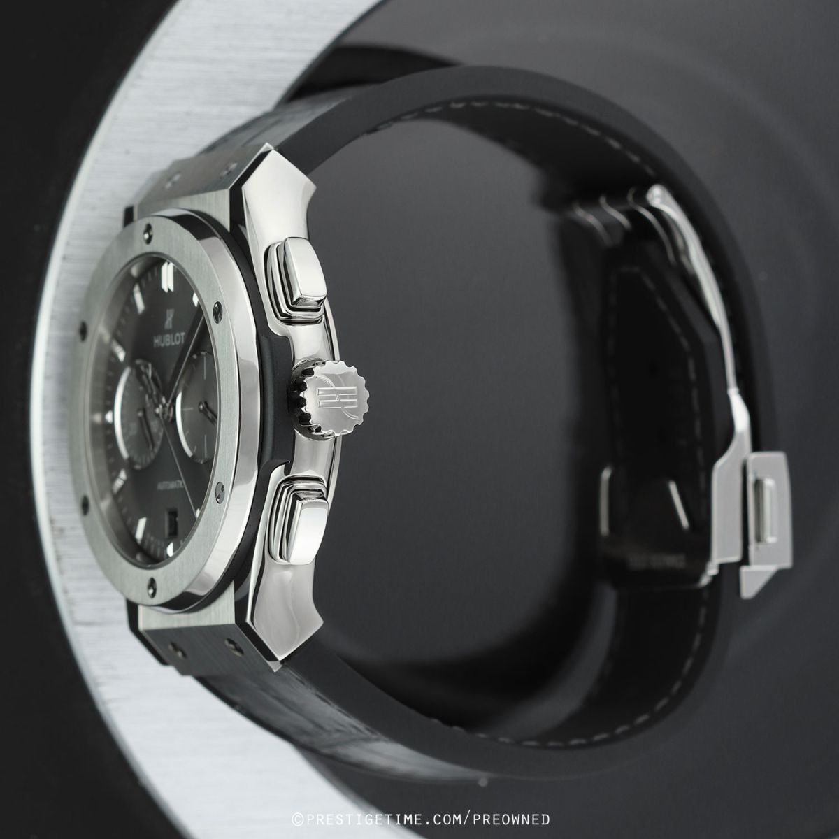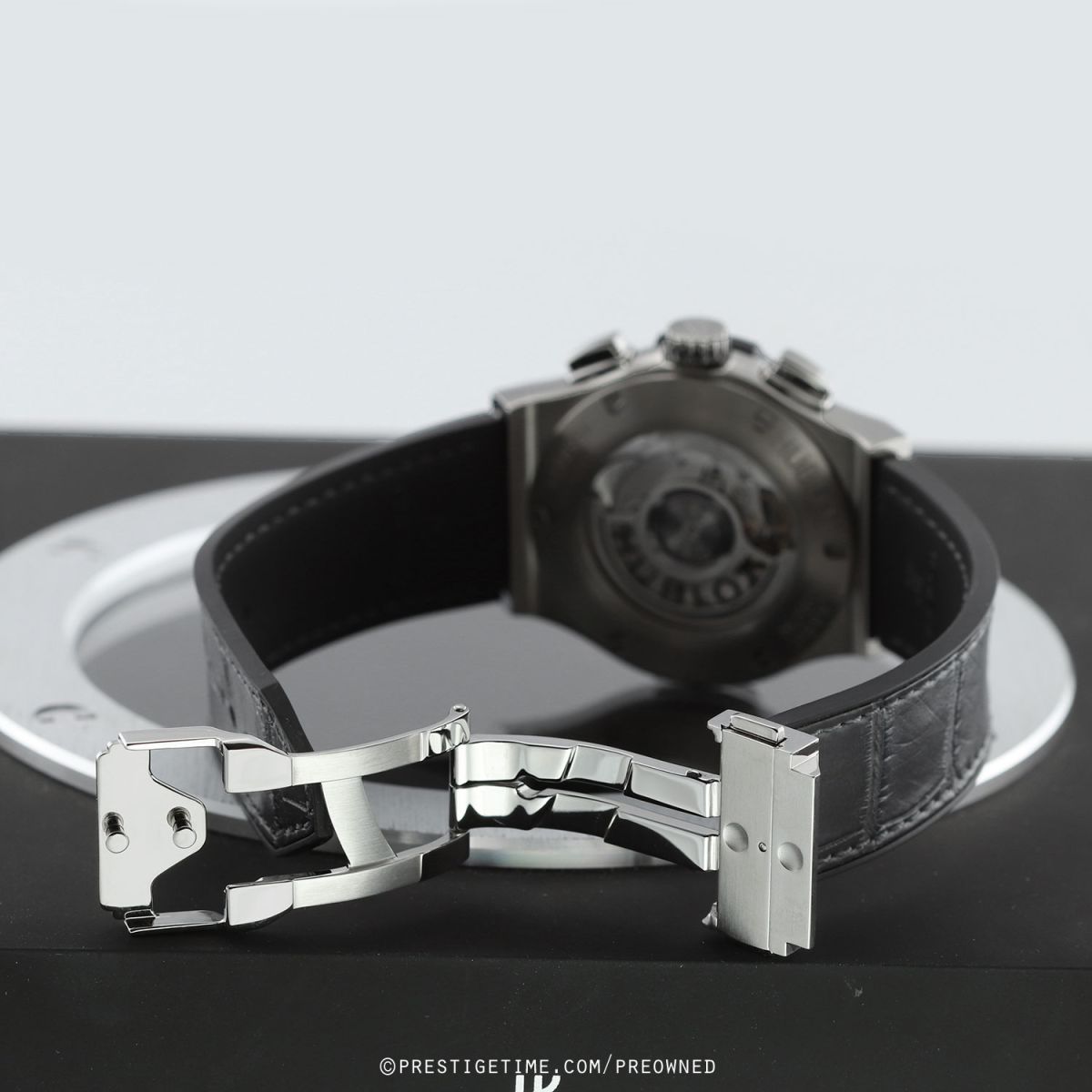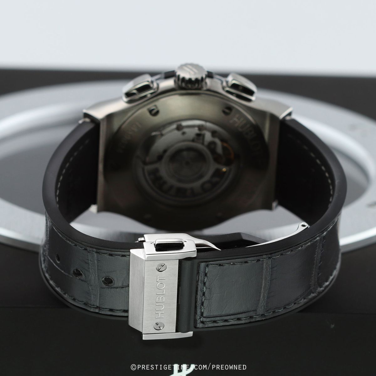 Strap: Fitted on its original Hublot grey gummy-alligator strap (grey alligator leather top & black rubber lining) with a push-button titanium deployant buckle. The strap is in excellent near new condition with the vast majority of its lifespan remaining. We would be comfortable grading the strap in 98%+ condition.