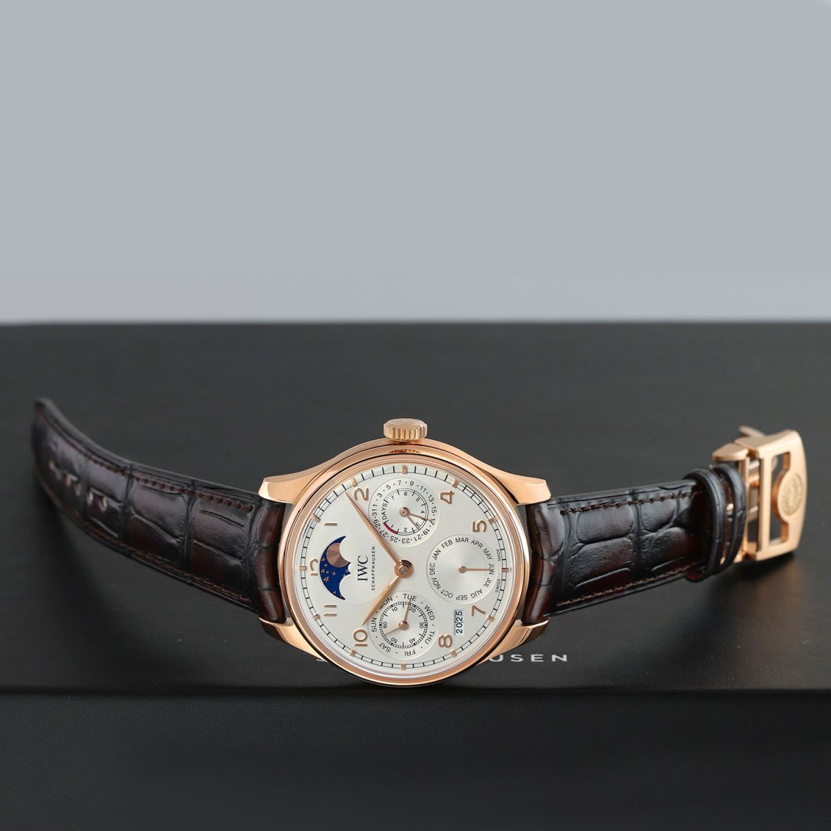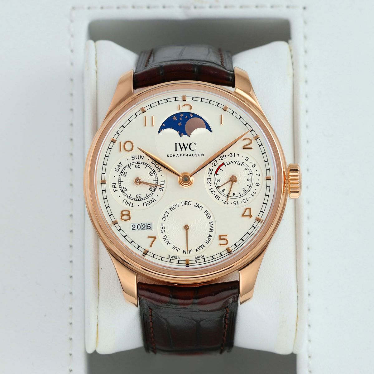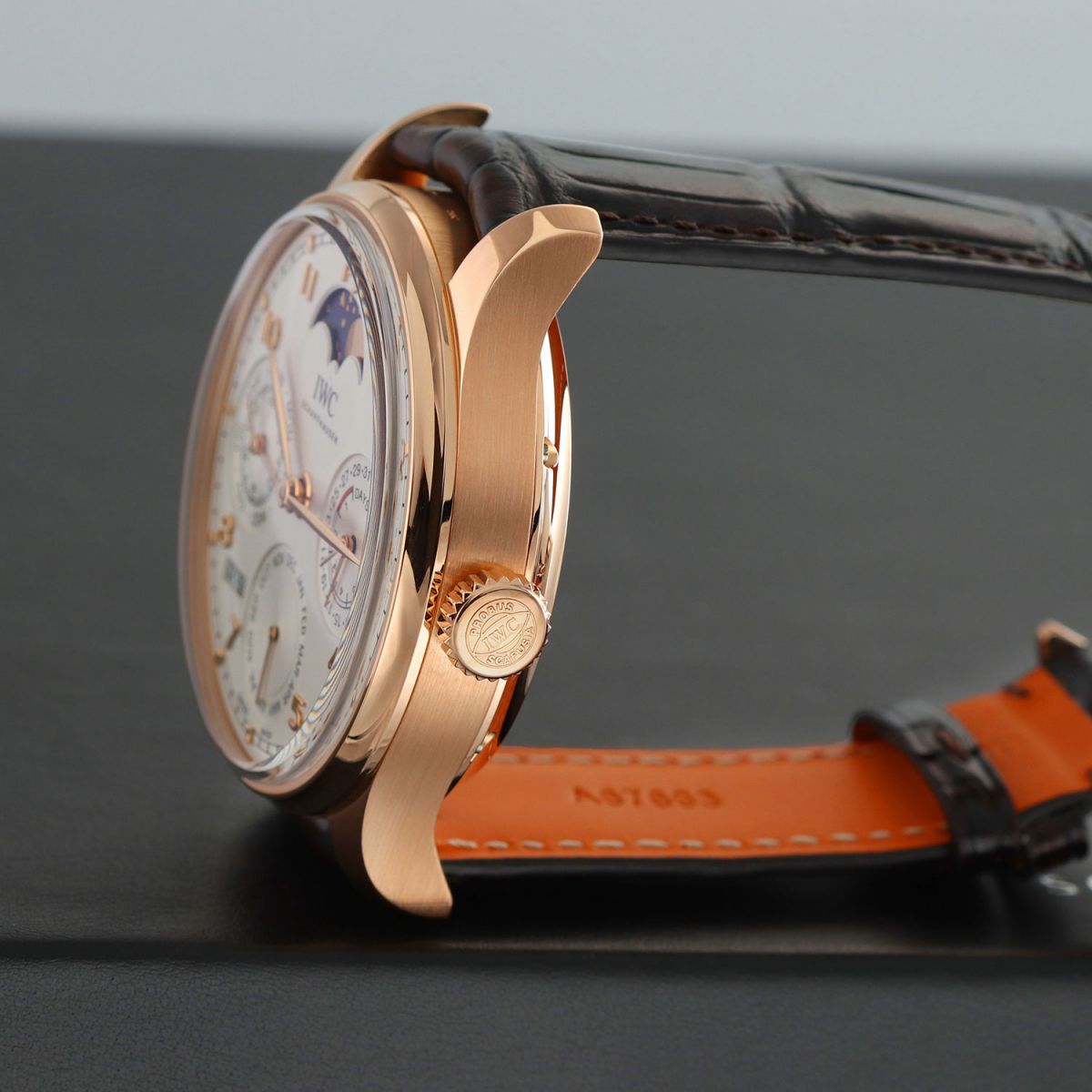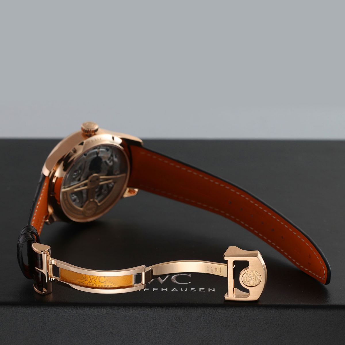 Strap: Fitted on a new IWC by Santoni brown alligator leather strap with Santoni's signature orange calfskin leather lining & a solid 18kt rose gold deployant buckle. The strap is brand new & unworn in crisp condition with its full wear lifespan remaining.