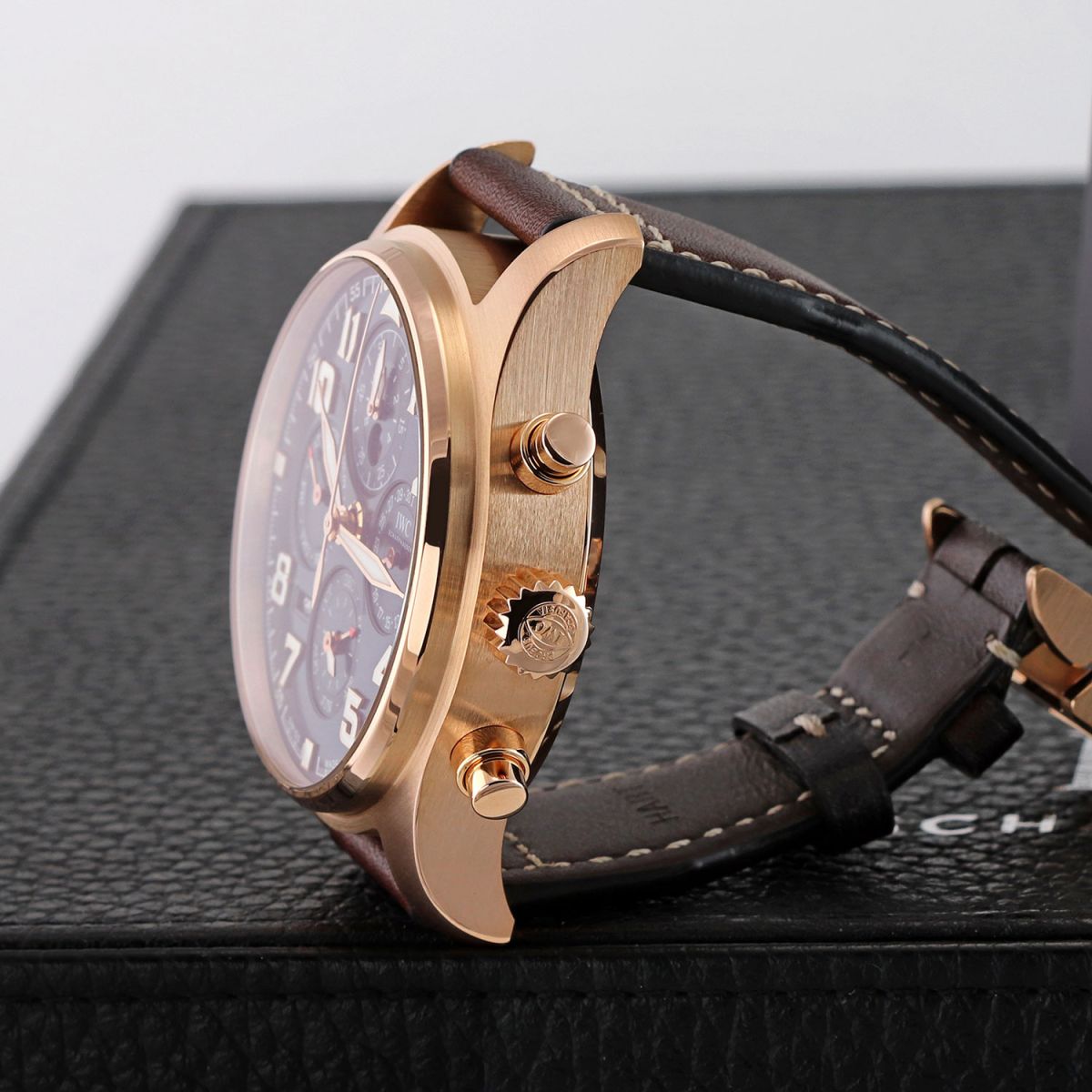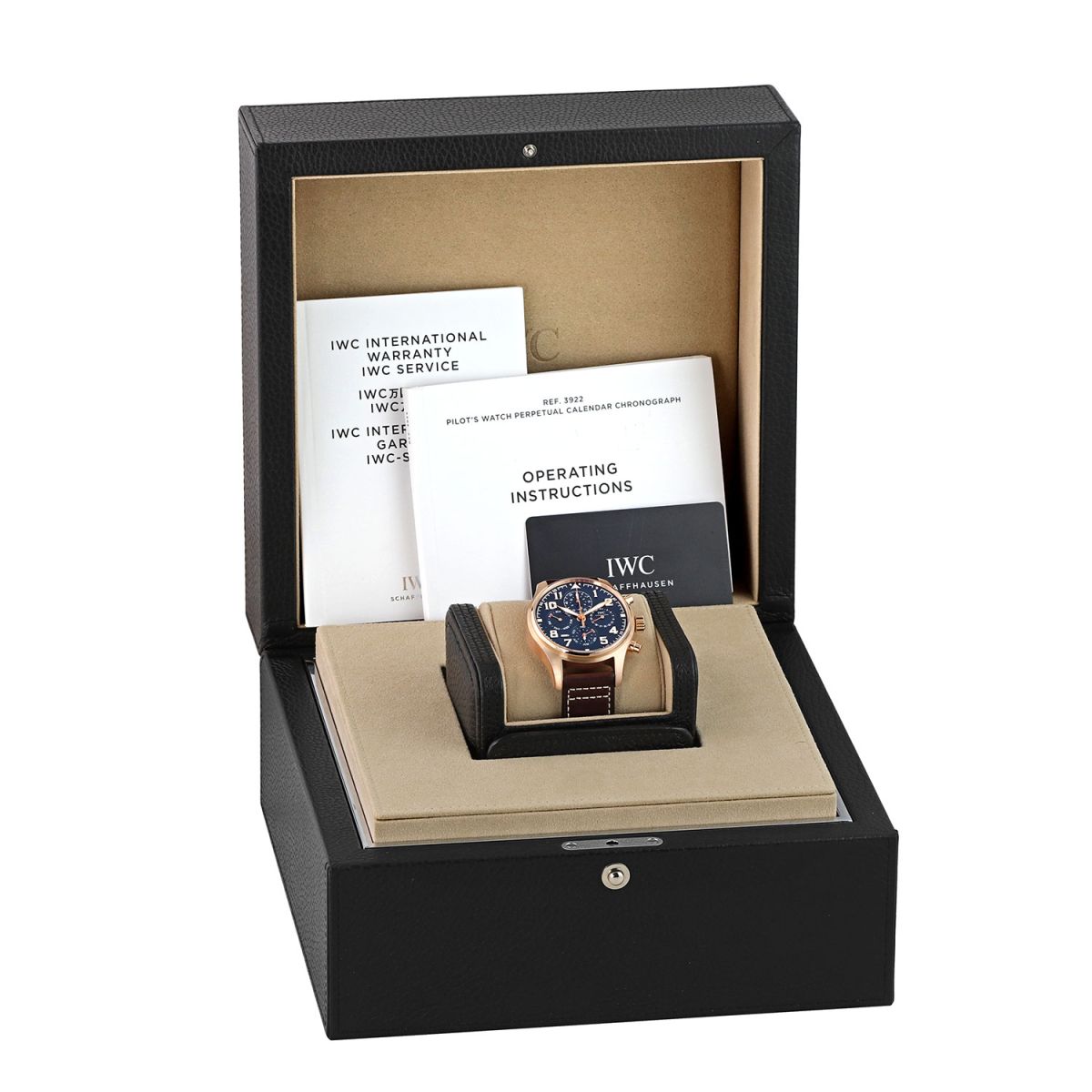 Strap: Fitted on its original IWC brown calfskin leather strap with contrasting off-white stitching and a solid 18kt rose gold tang buckle. The strap is in excellent, near new condition with the majority of it wear lifespan remaining. We would be comfortable rating the strap as in 97%+ condition.