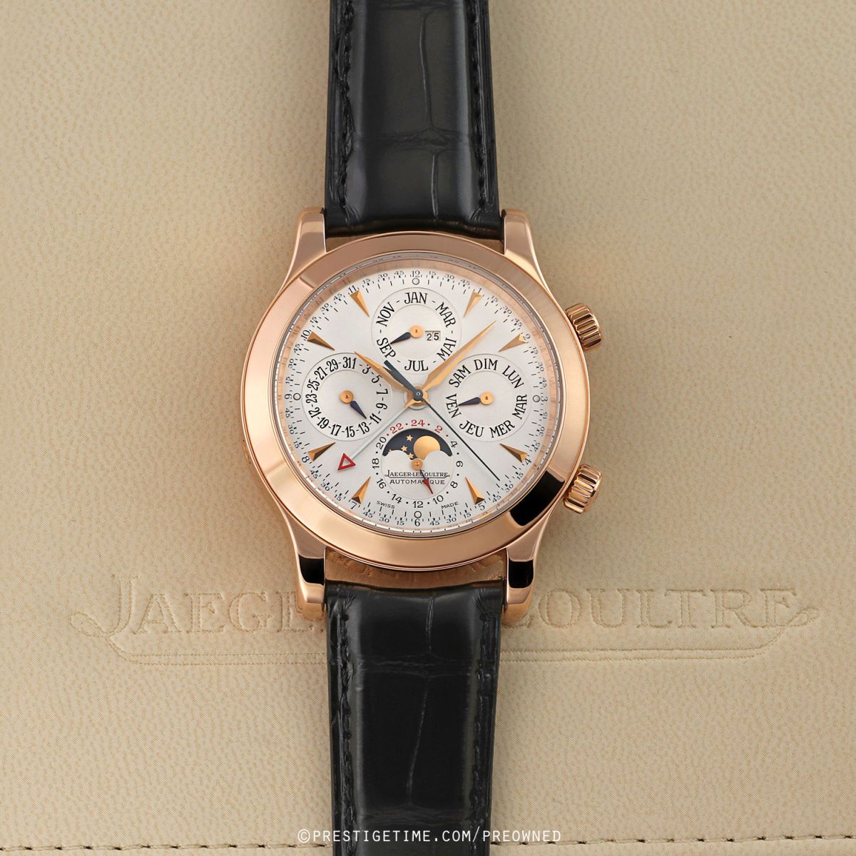 Movement: Powered by an in-house Jaeger LeCoultre caliber 909, beats at 28,800 vph (4Hz), contains 36 jewels & has a power reserve of +/- 45 hours. The Rotor features a peripheral oscillating weight in 22kt gold.