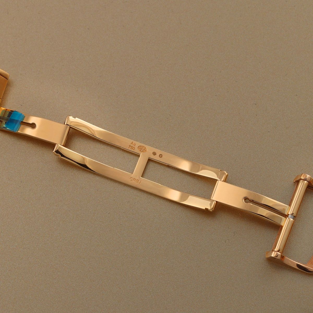 Case: Brushed & polished 18kt rose gold case. Two-tiered silver dial with fine grained finish. Satin & polished finished dauphine-shaped hands enhances legibility. Applied rose gold index hour markers. Fine printed minute track.