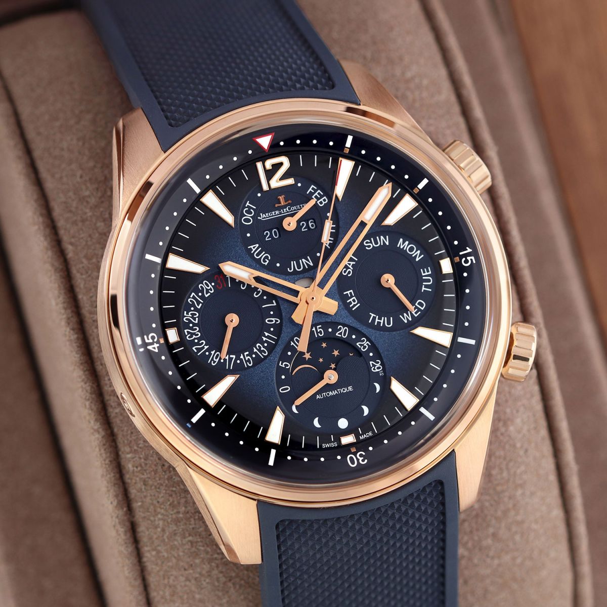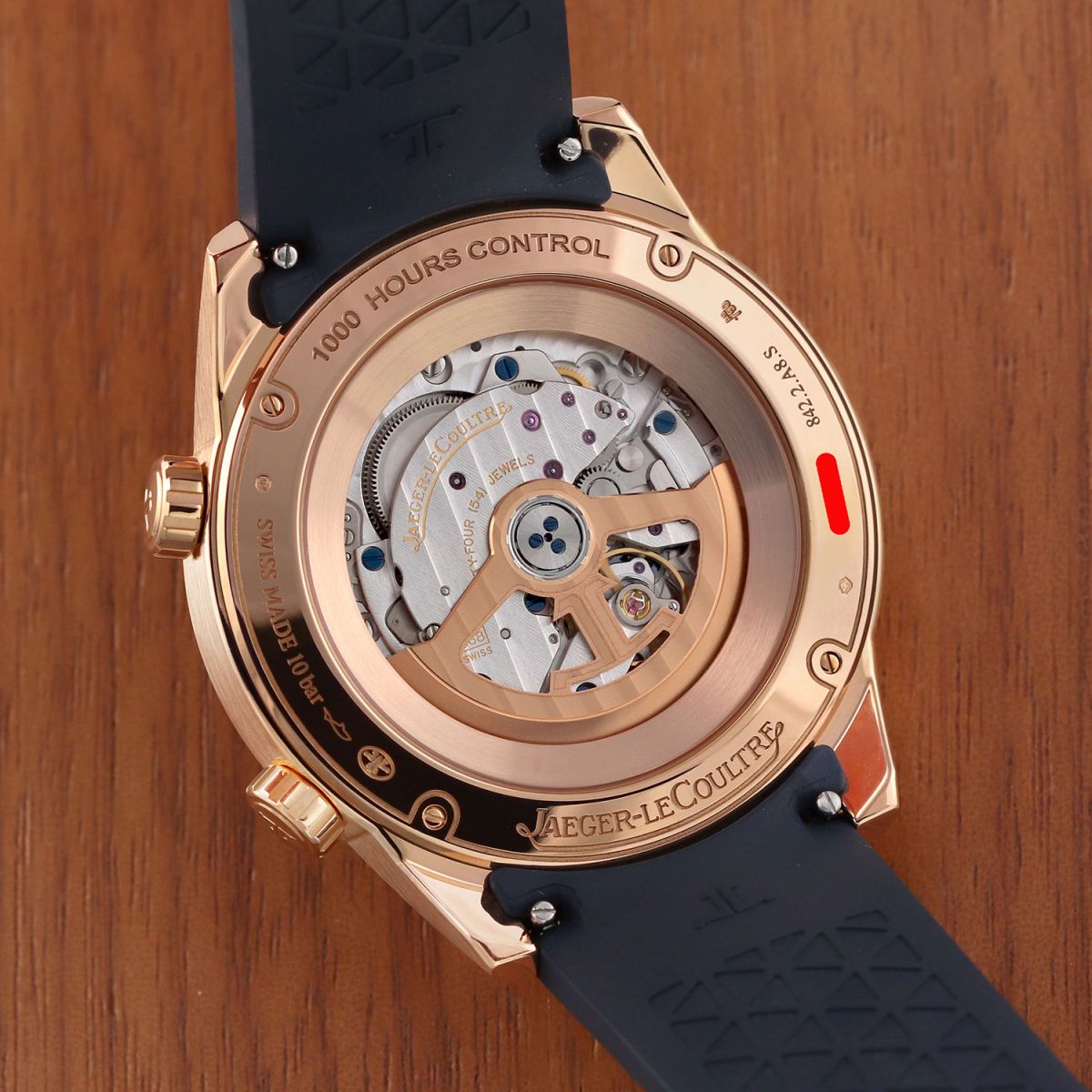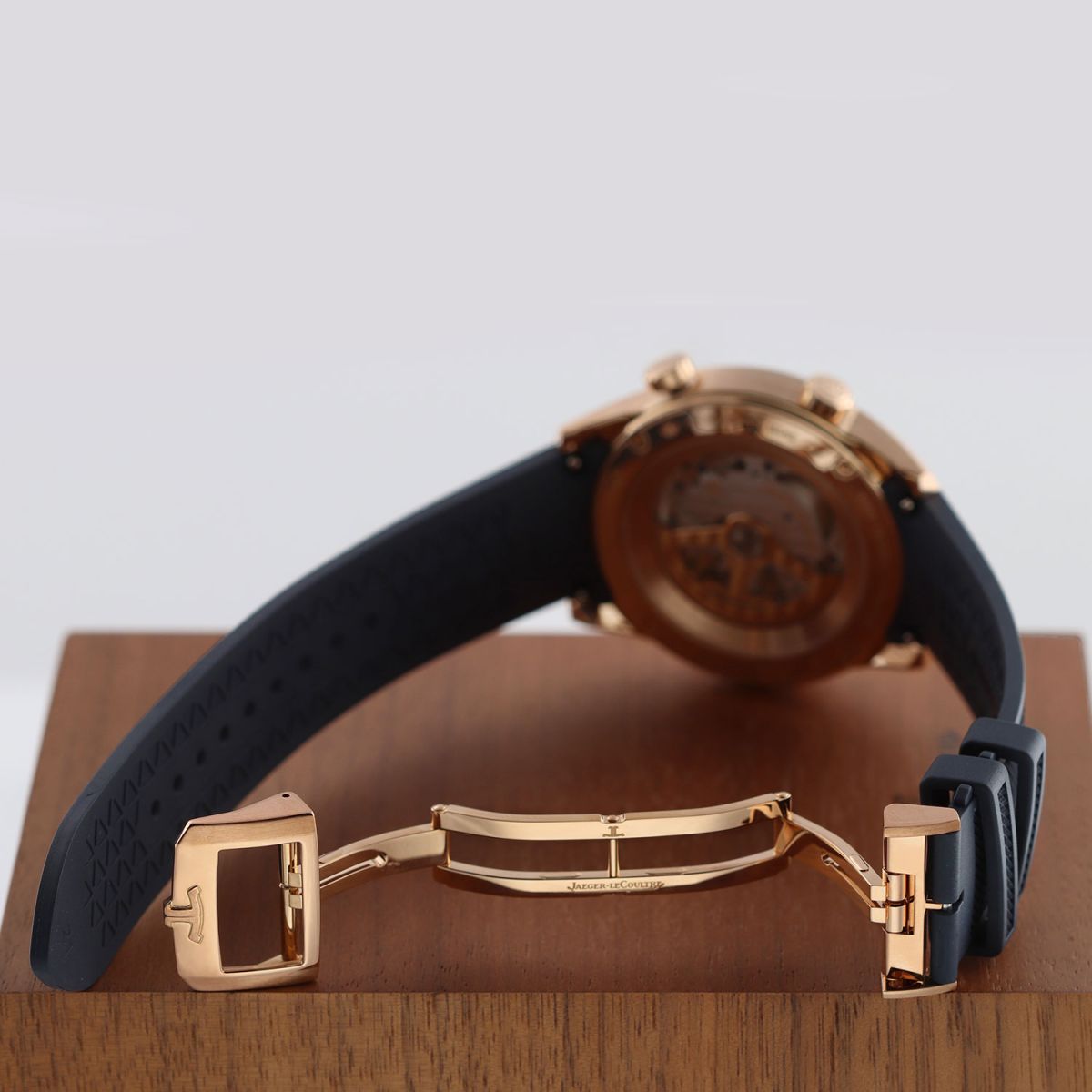 - Fitted on its JLC original blue rubber strap with a solid 18kt rose gold deployant buckle. This strap is excellent near-new condition with its full wear lifespan remaining. We would rate this strap in 99% overall condition.