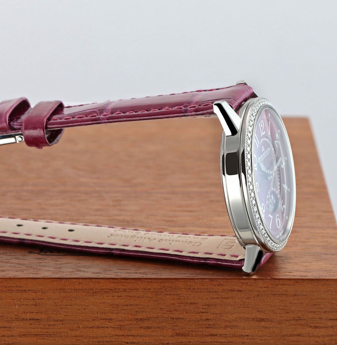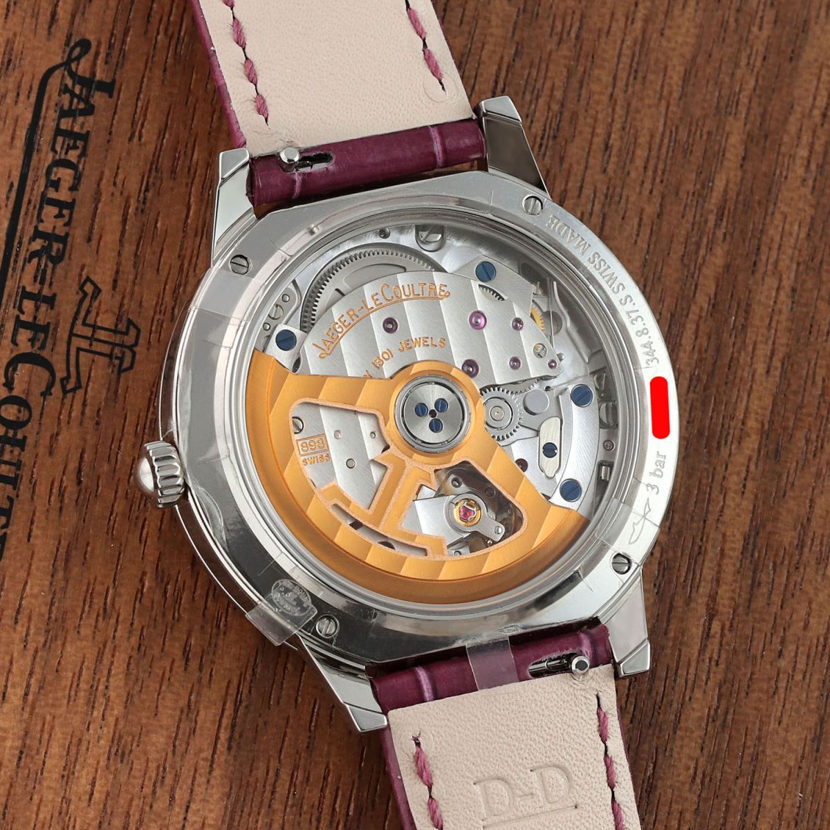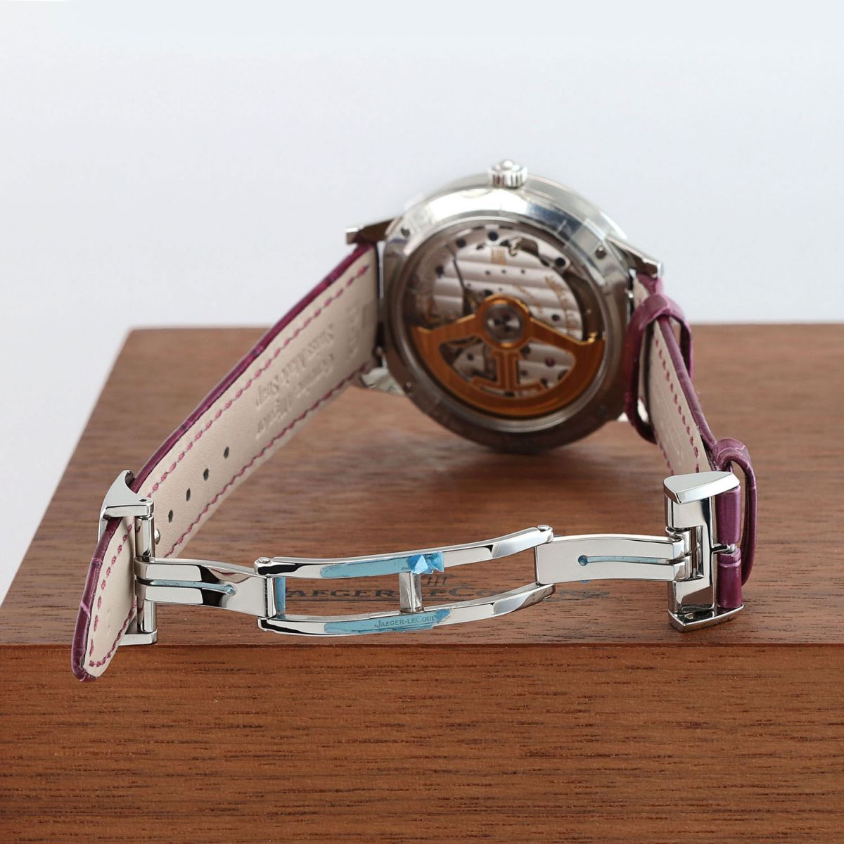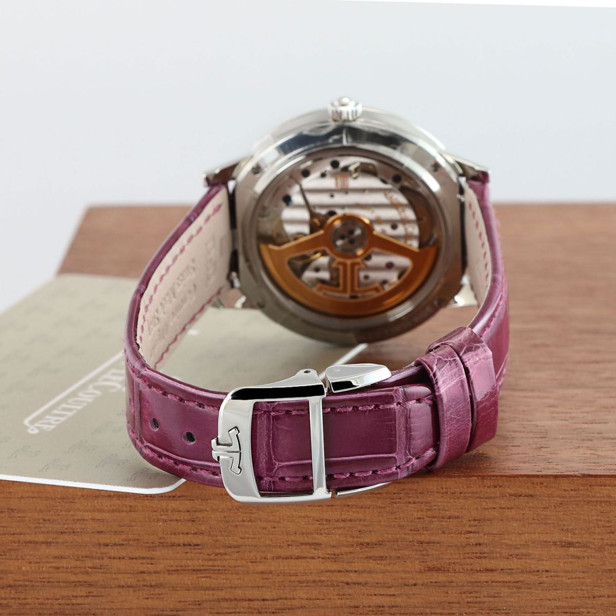 Strap: Fitts on a JLC original purple alligator leather strap with a stainless steel deployant buckle. The strap is unworn, in new condition, with its full wear lifespan remaining.