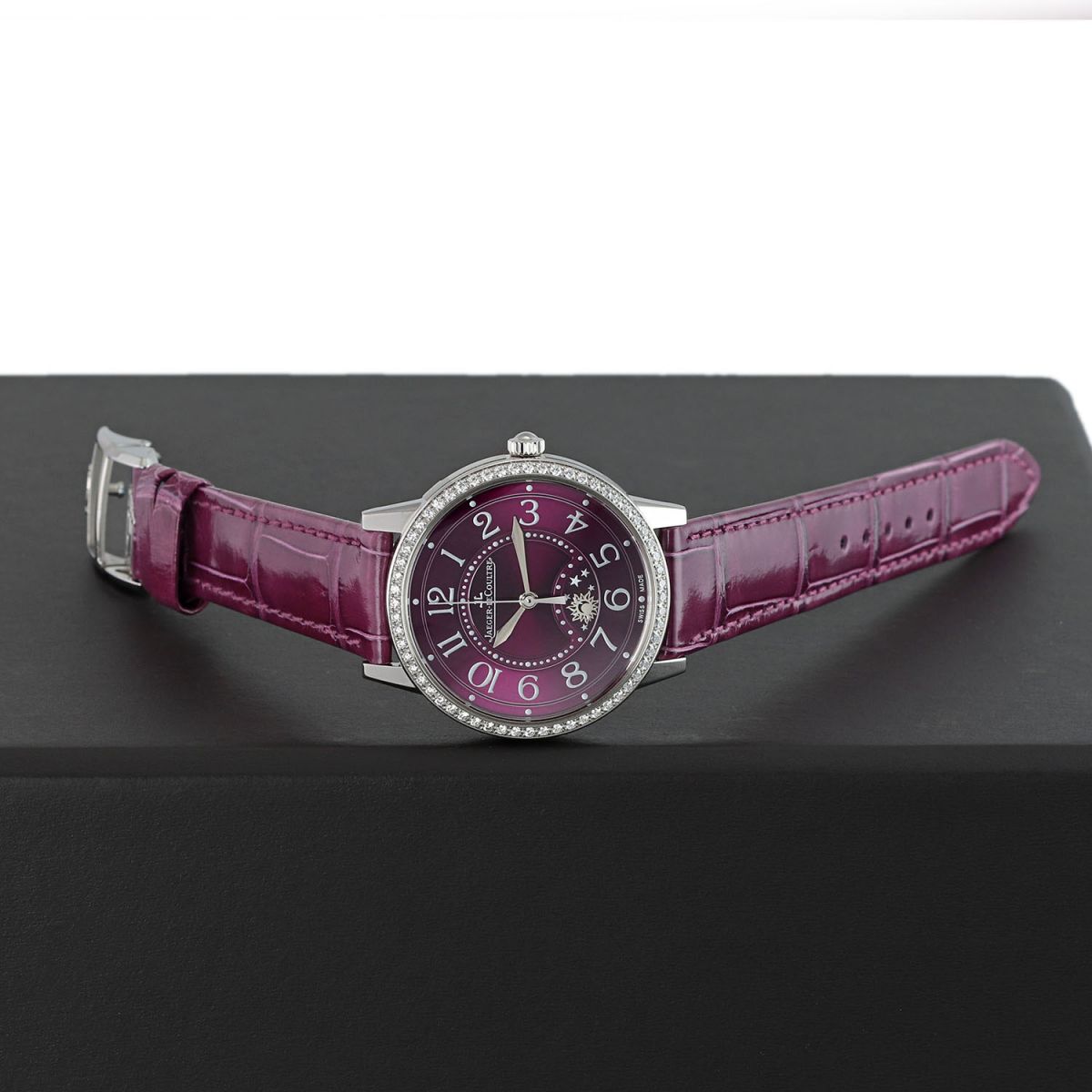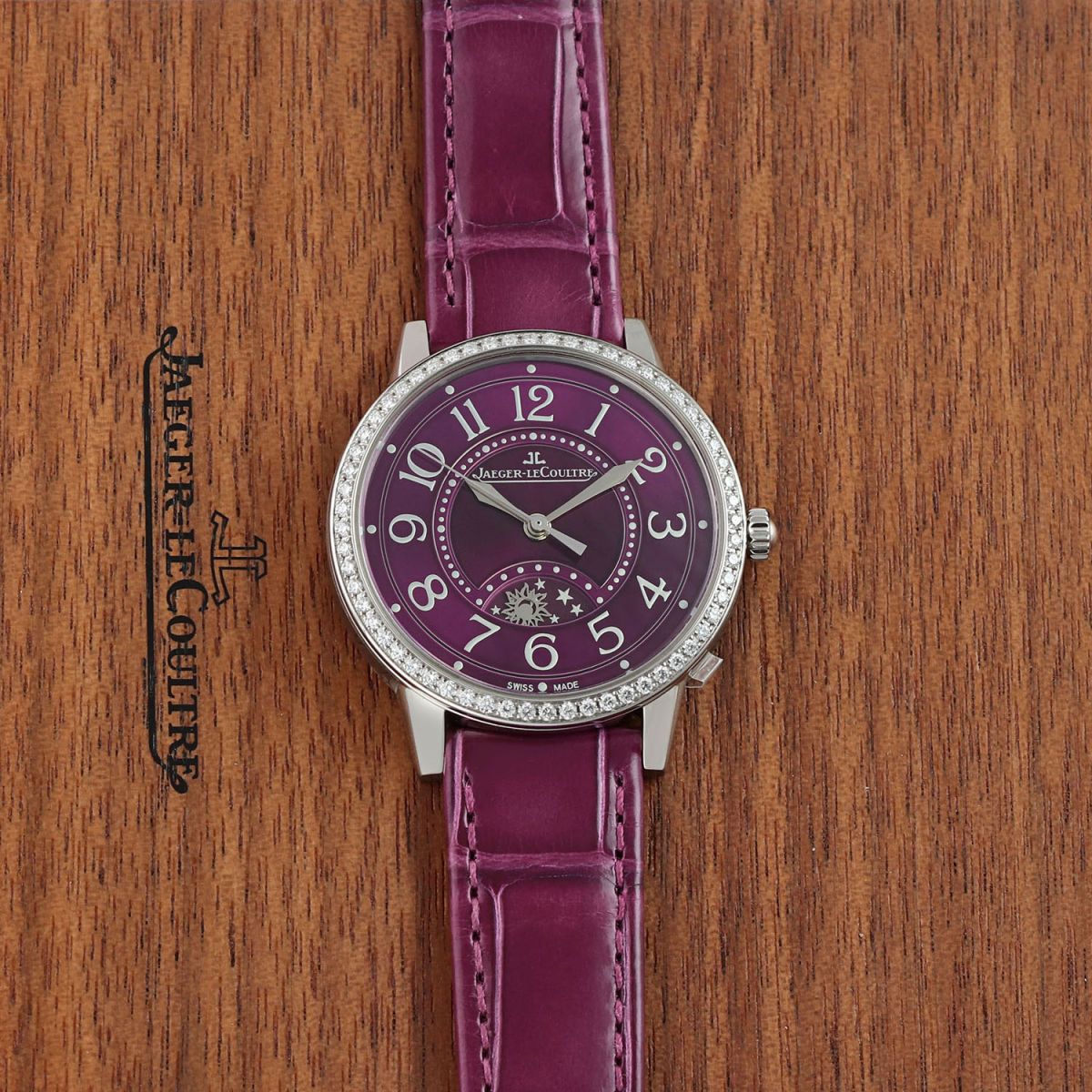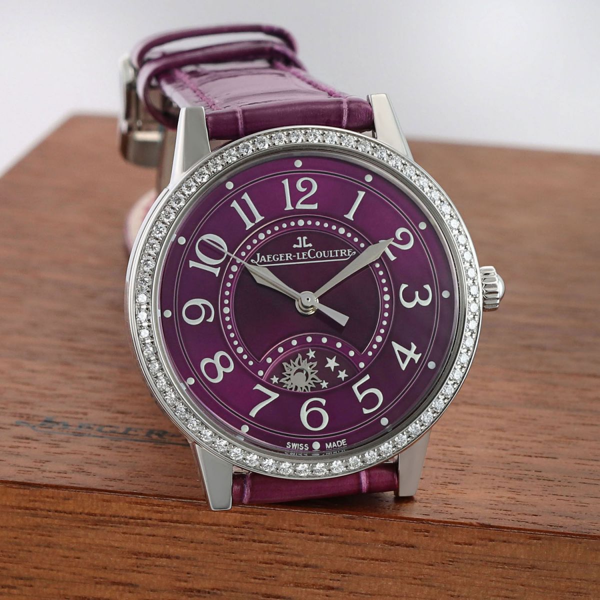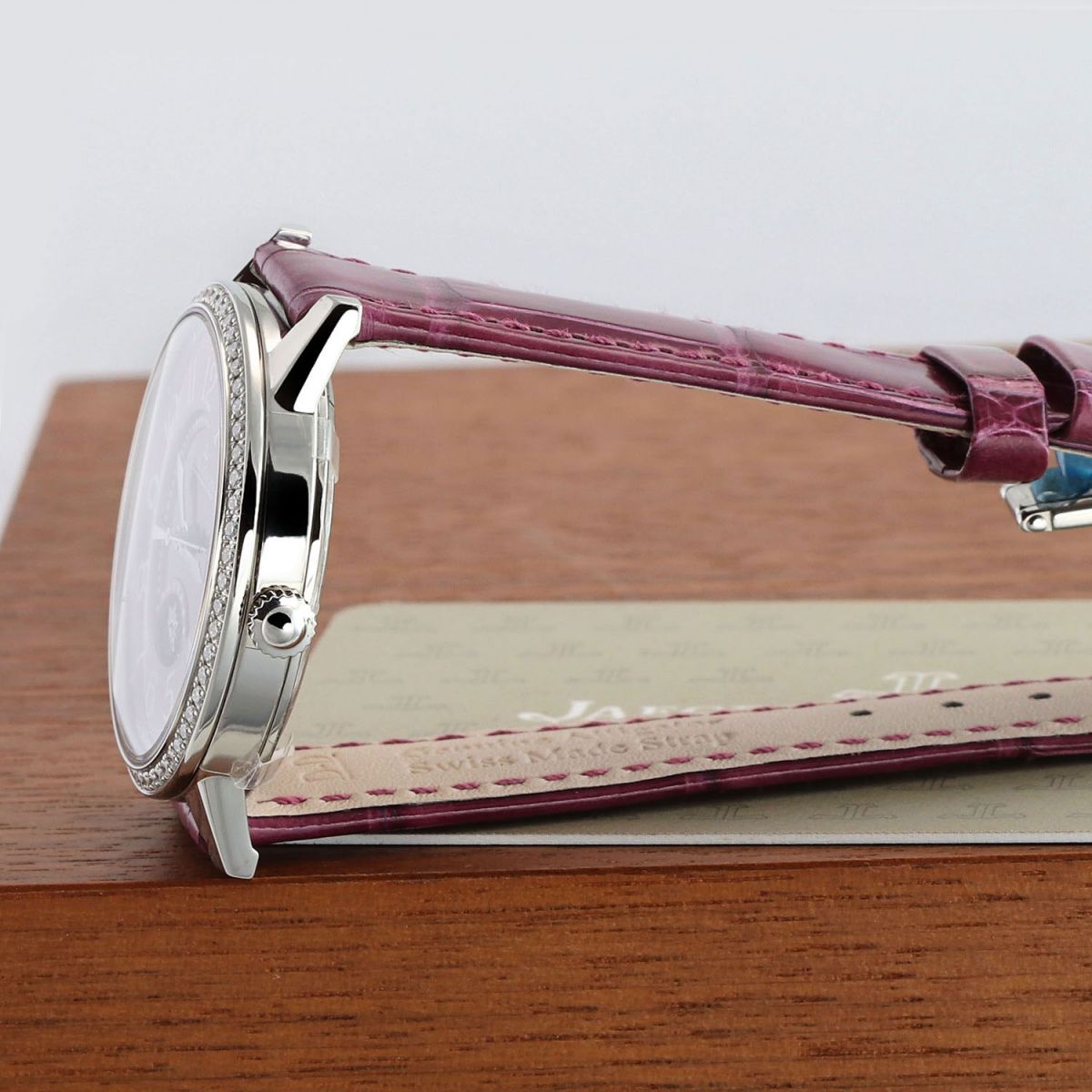 Strap: Fitts on a JLC original purple alligator leather strap with a stainless steel deployant buckle. The strap is unworn, in new condition, with its full wear lifespan remaining.