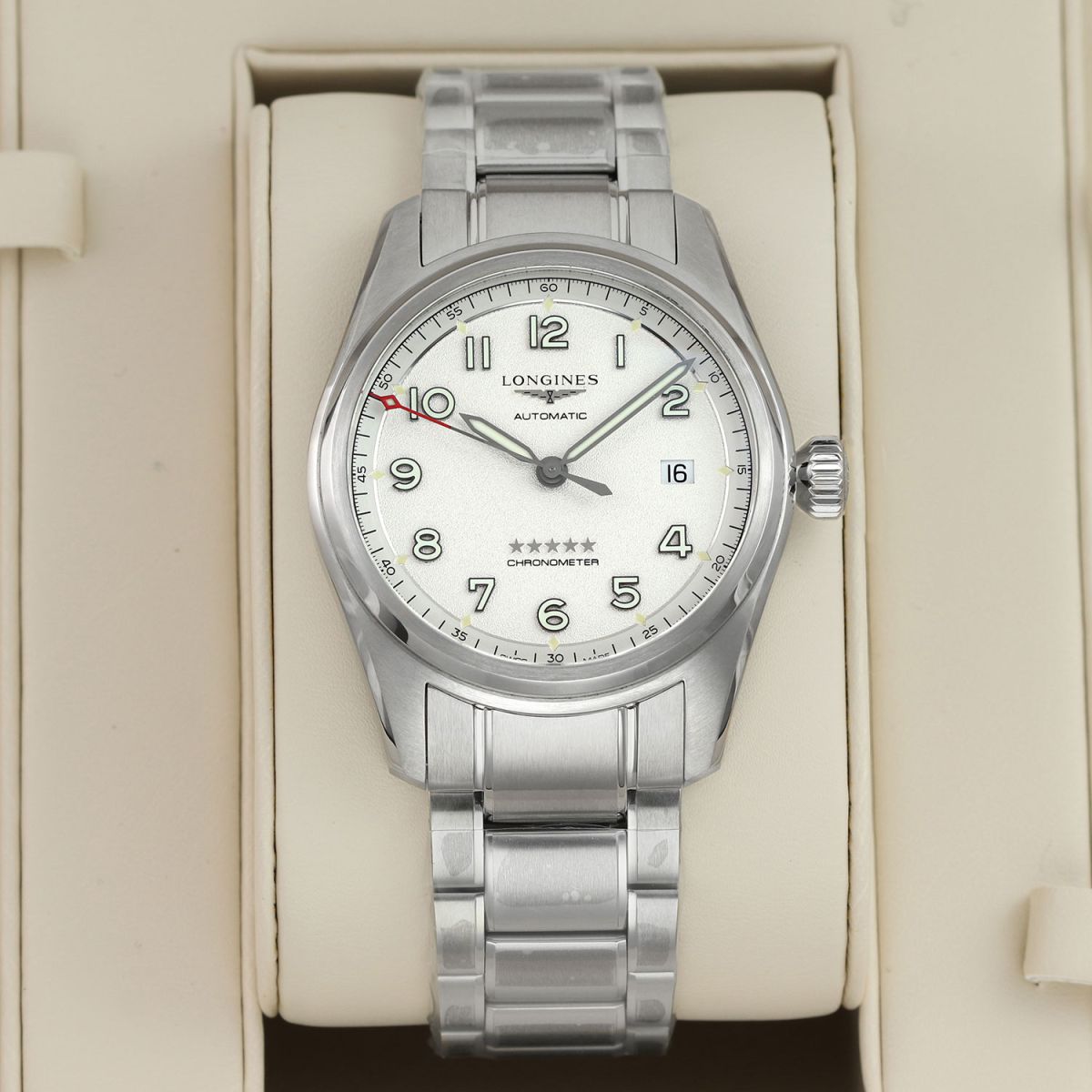 Movement: Powered by a COSC certified Longines caliber L888.4 (base ETA A31.L11), features a silicon balance spring, beats at 25,200 vph (3.5Hz), contains 21 jewels & has a power reserve of +/- 72 hours.