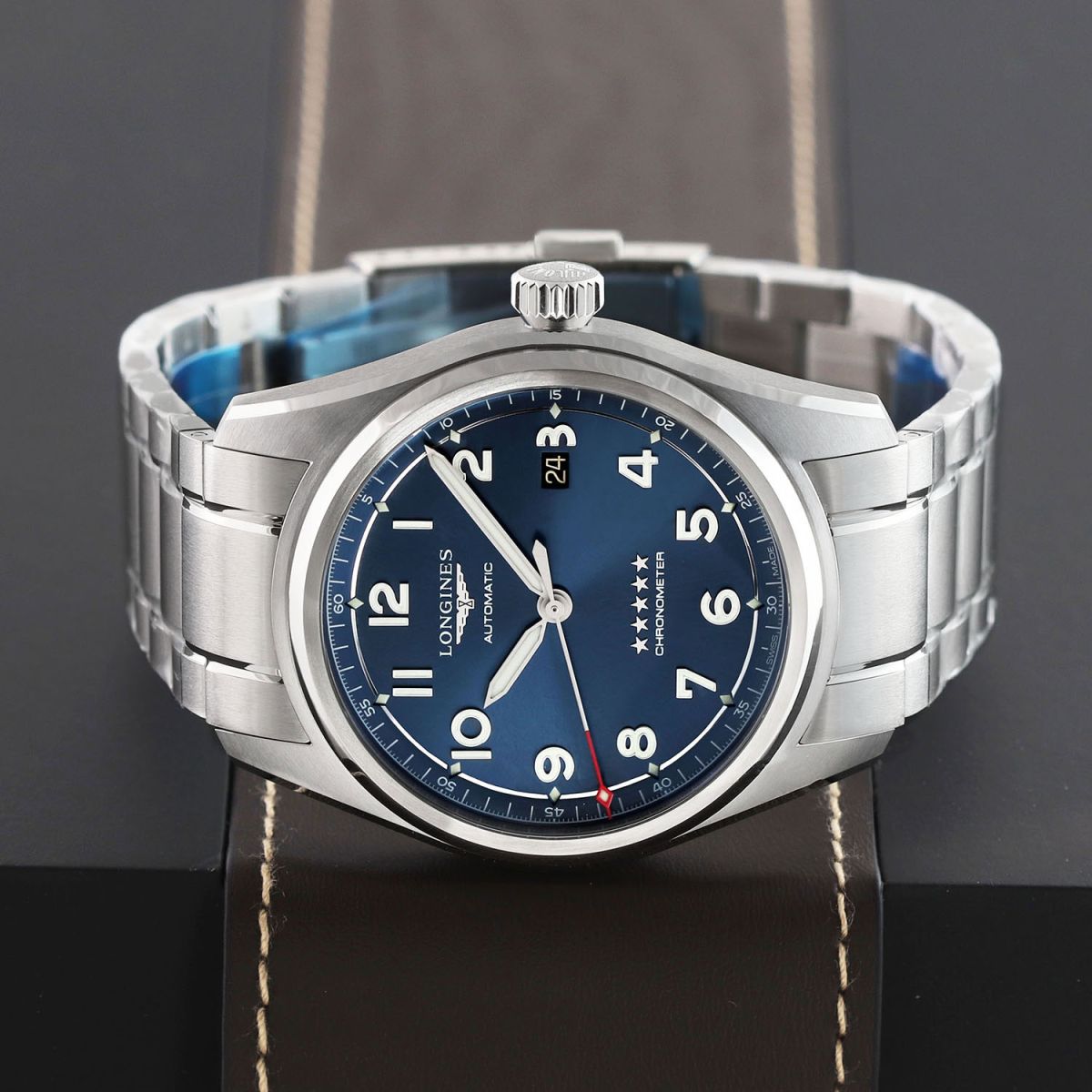 - An additional Longines original blue calfskin leather strap with contrasting white stitching & a stainless steel tang buckle. This strap is brand new & unworn with its full wear lifespan remaining.