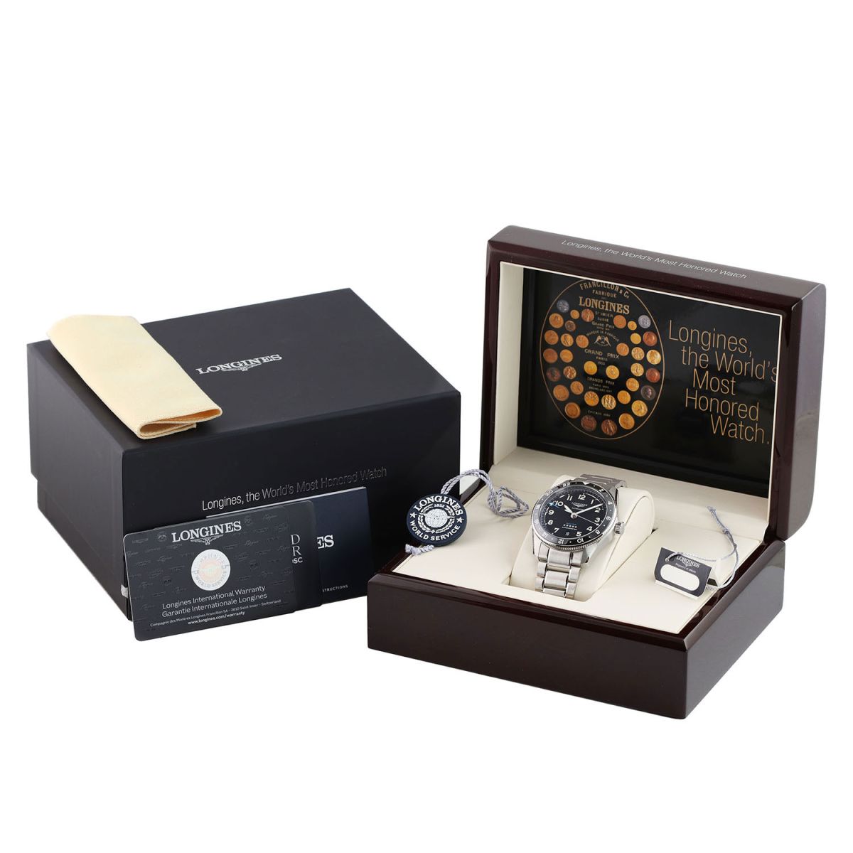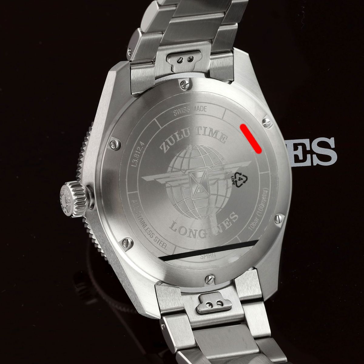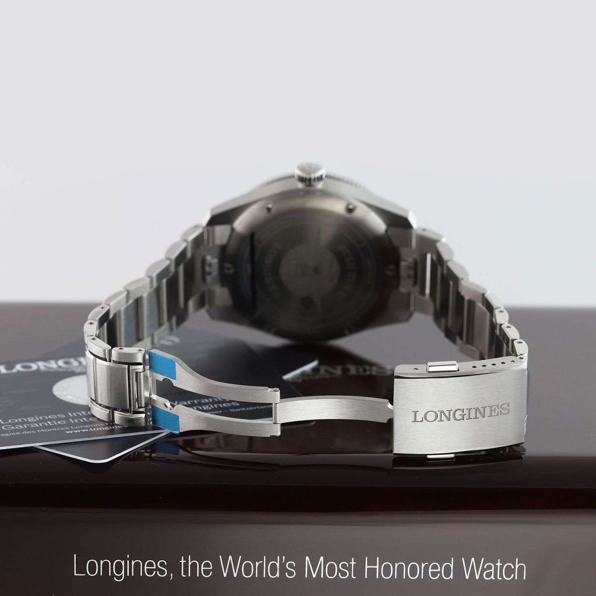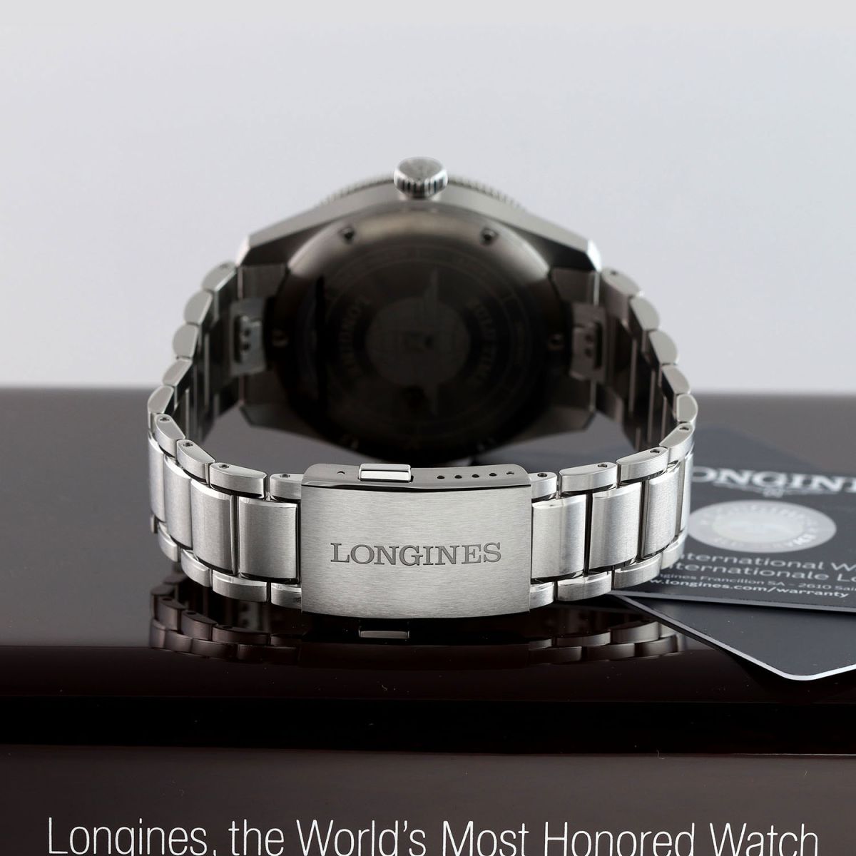 Movement: Powered by a Longines caliber L844.4 (base ETA A31.411), features a silicon balance spring, COSC Certified Chronometer, beats at 25'200 vph (3.5Hz), contains 21 jewels & has a power reserve of +/- 72 hours.