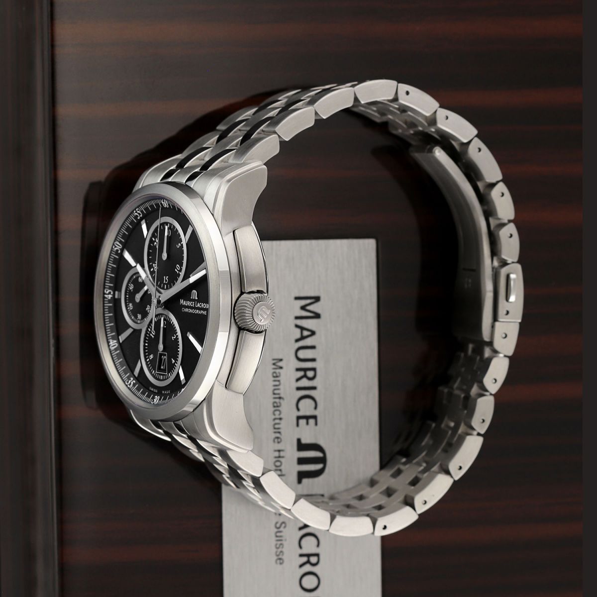 Movement: Powered by a Maurice Lacroix caliber ML112 (base ETA/Valjoux 7750), beats at 28,800 vph, contains 25 jewels & has a power reserve of +/- 46 hours