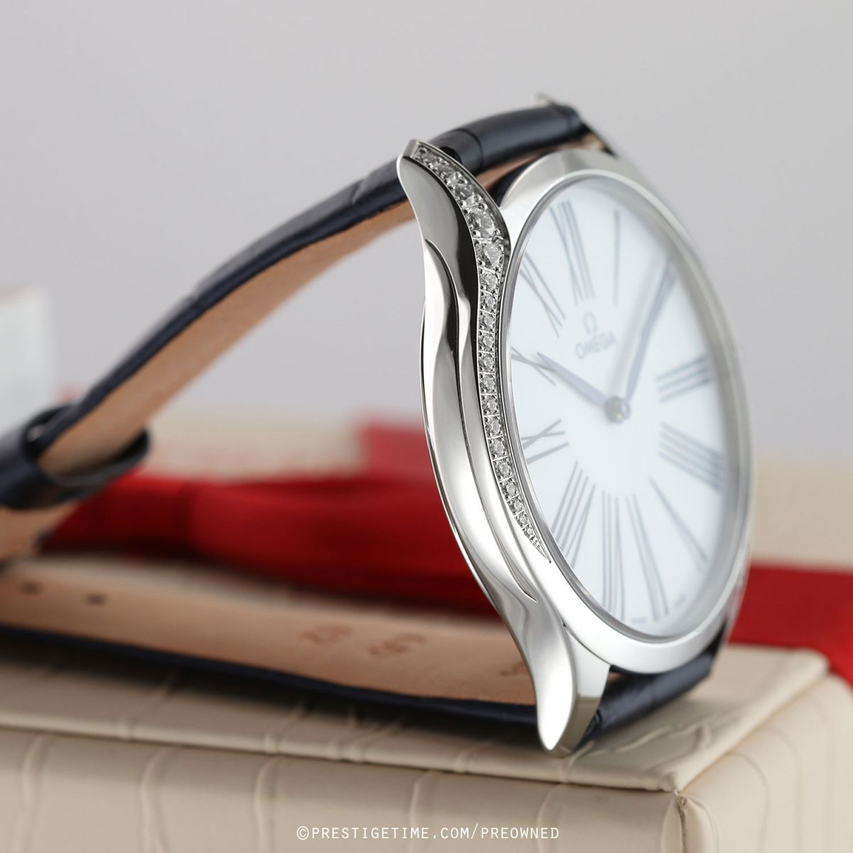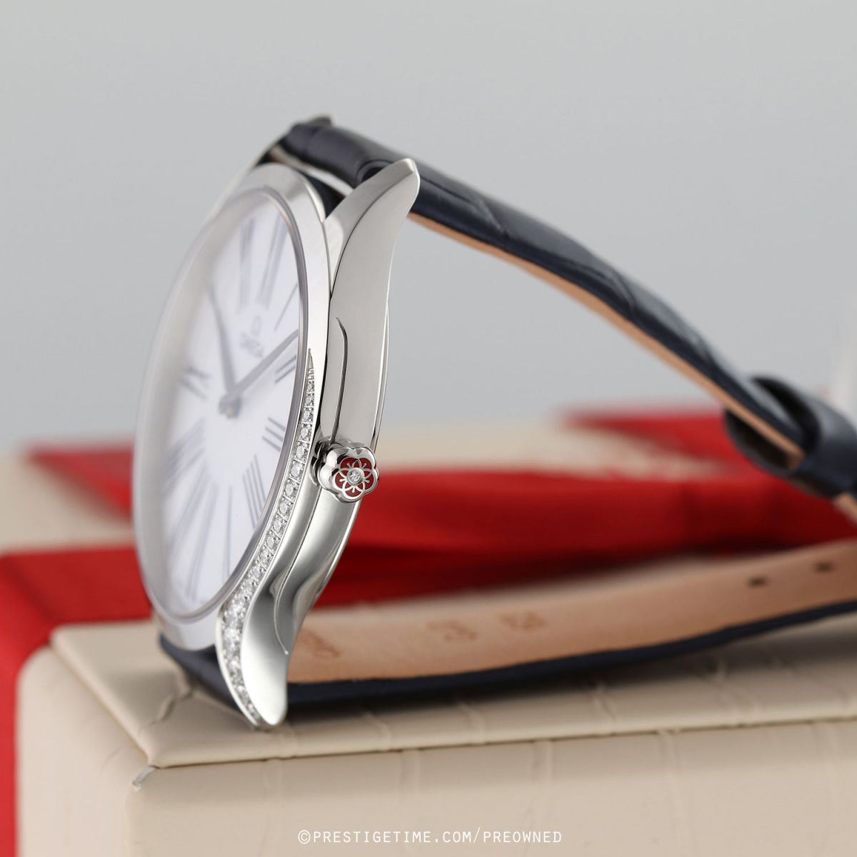 - 38 diamonds factory set along the case curves on each side, for a total weight of +/- 0.69 carats.