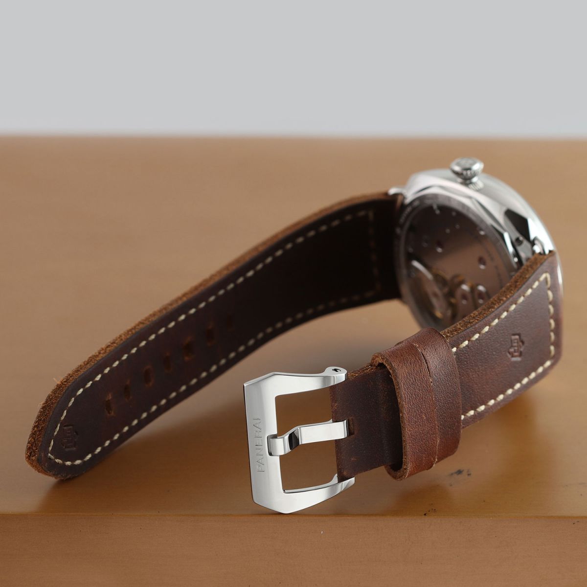 Strap: Fitted on its original Panerai brown raw-hide calfskin leather strap with contrasting stitching with a stainless steel tang buckle. The strap is in excellent near new condition with the vast majority of its wear lifespan remaining. We would grade this strap in 98% overall condition.