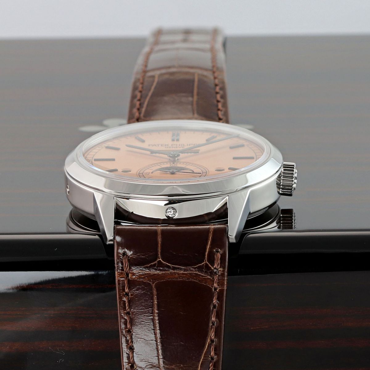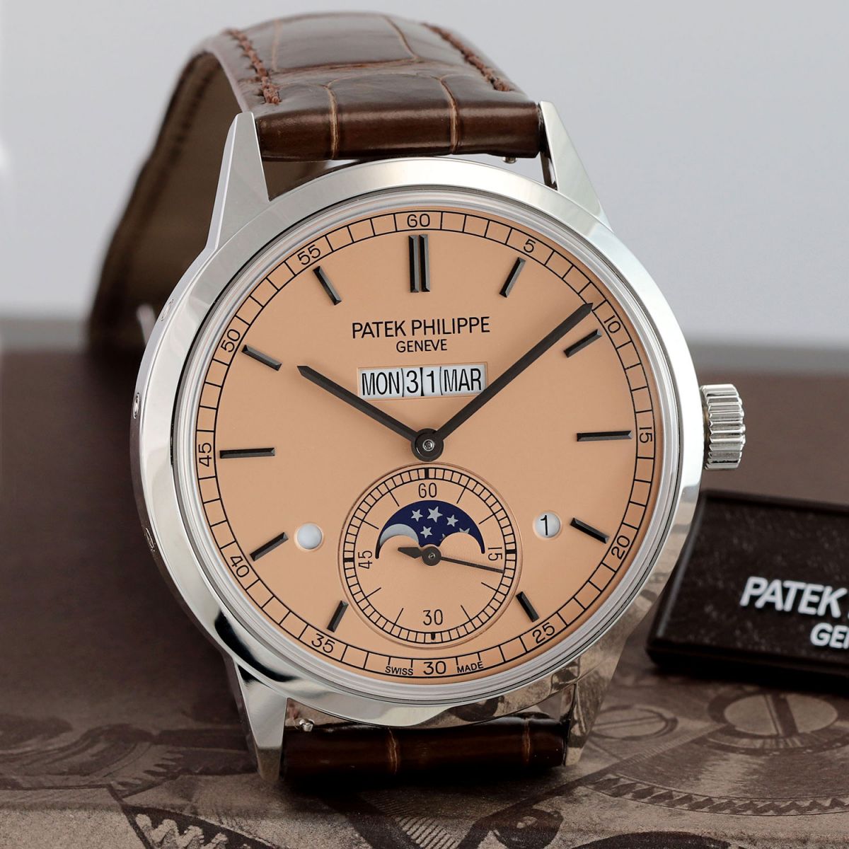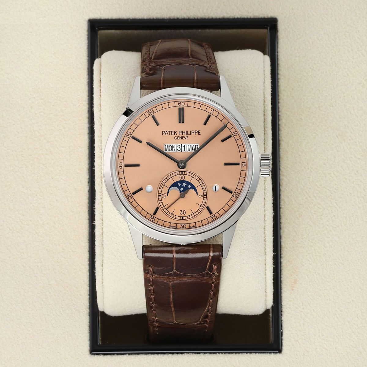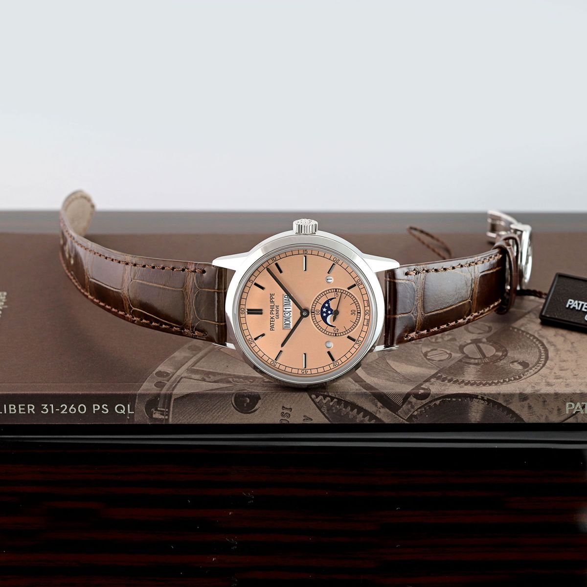 Movement: Powered by a self-winding Patek Philippe in-house caliber 31-260 PS QL, with a Gyromax® balance and a Spiromax® balance spring. The movement is composed of 503 parts, beats at 28,800 vph (4 Hz), contains 55 jewels and has a power reserve of 38-48 hours. Also features a solid 950 platinum micro-rotor. This caliber 31-260 PS QL bears the Patek Philippe Seal hallmark.