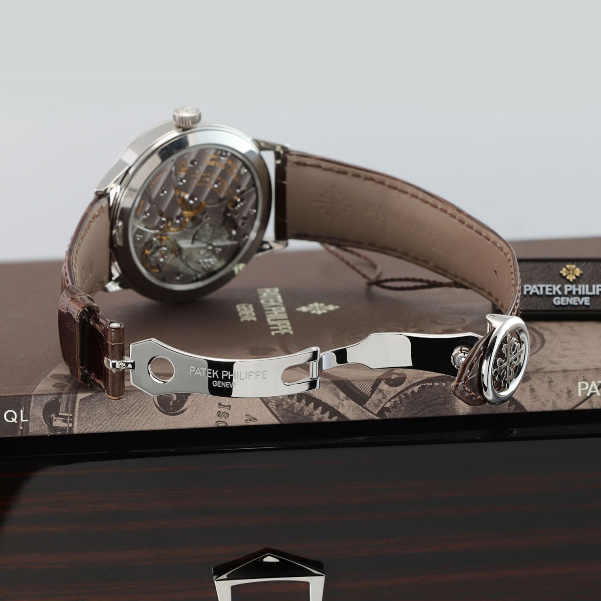 Strap: Fitted on a its original Patek Philippe original brown alligator leather strap with a polished platinum deployant buckle. The strap is unworn with its full wear life-span remaining.