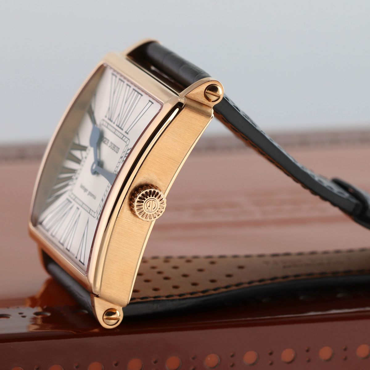Bushed & polished 18kt rose gold case. Silver dial. Blued steel hands. Mirrored Roman numeral hour markers. Fine printed minutes/seconds track.