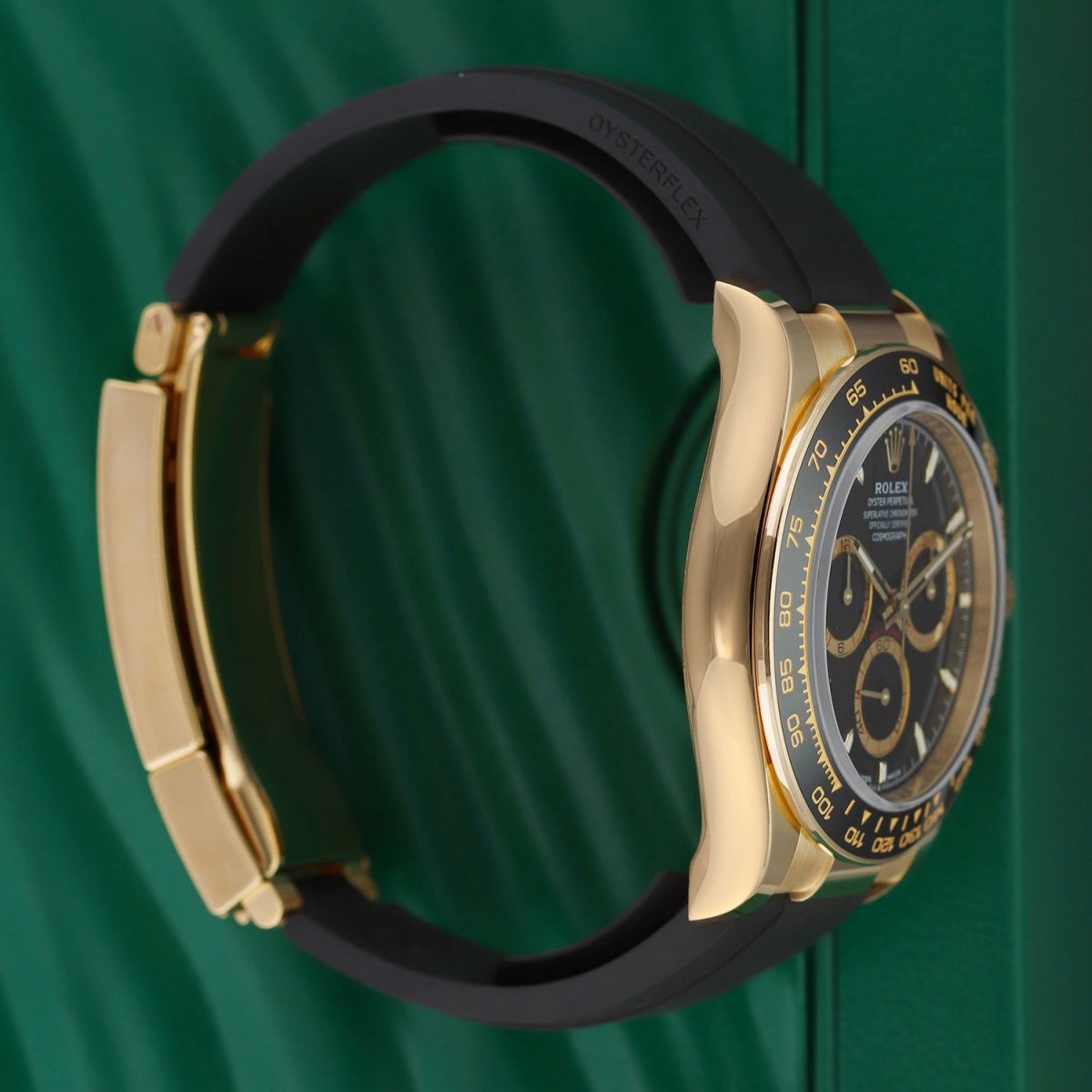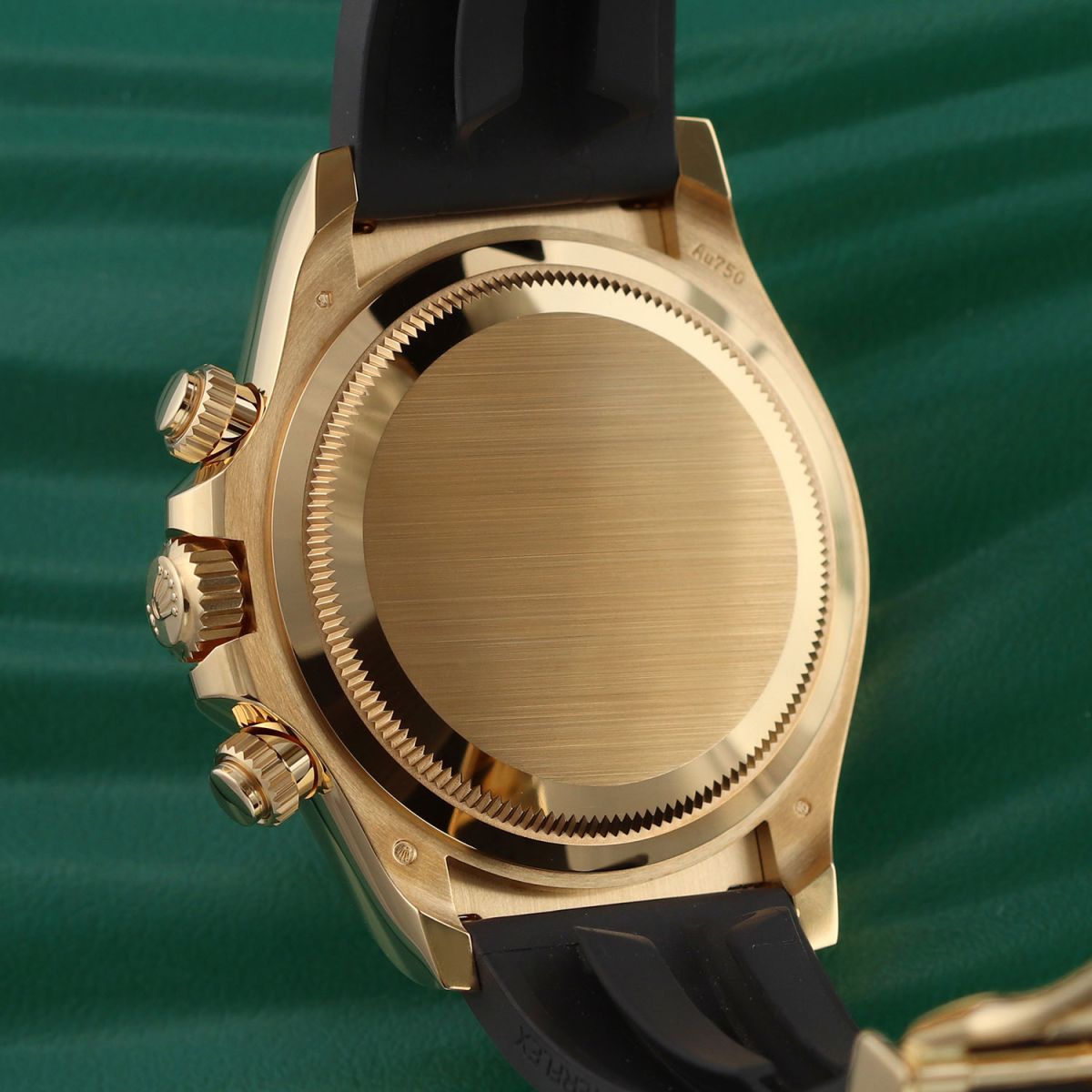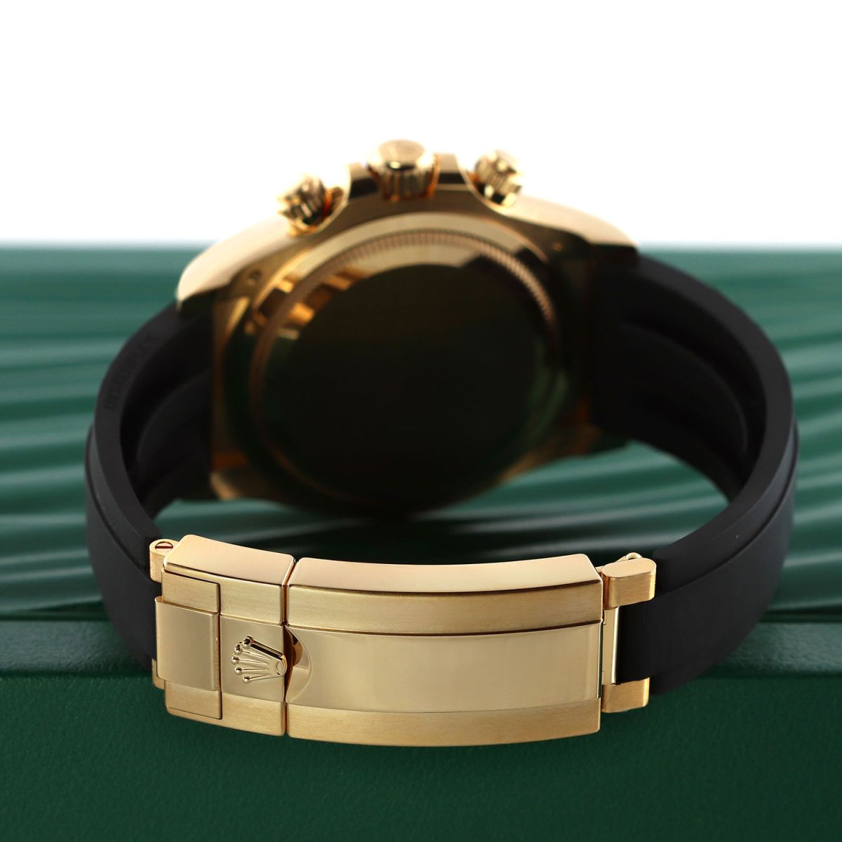 Strap: Fitted on its original Rolex Oysterflex strap, constructed of flexible metal blades overmoulded with high-performance elastomer. Features a solid 18kt yellow gold folding Oysterlock safety clasp with a Glidelock Extension System.