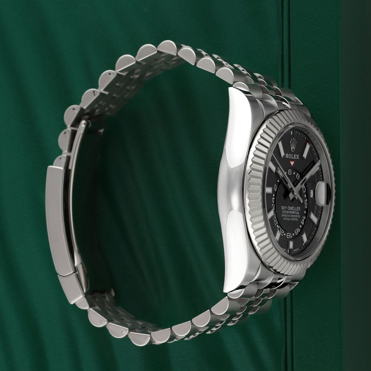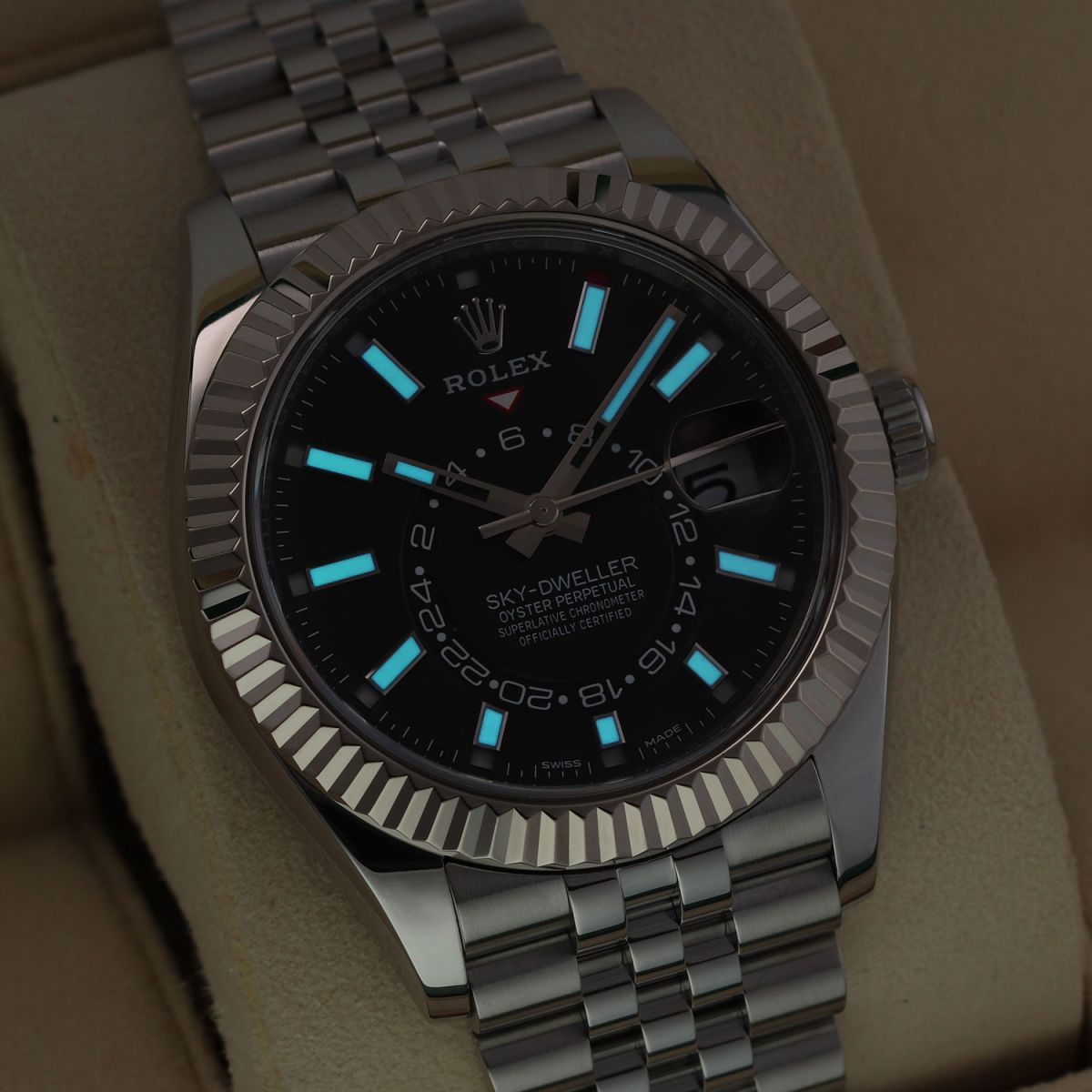Movement: Powered by a Rolex in-house calibre 9001 which beats at 28,800 vph, contains 40 jewels & has an approximate power reserve of 72 hours. The movement features a Paramagnetic blue Parachrom hairspring & high performance Paraflex shock absorbers. The watch boasts a total of 14 patents, seven of which are on the movement.