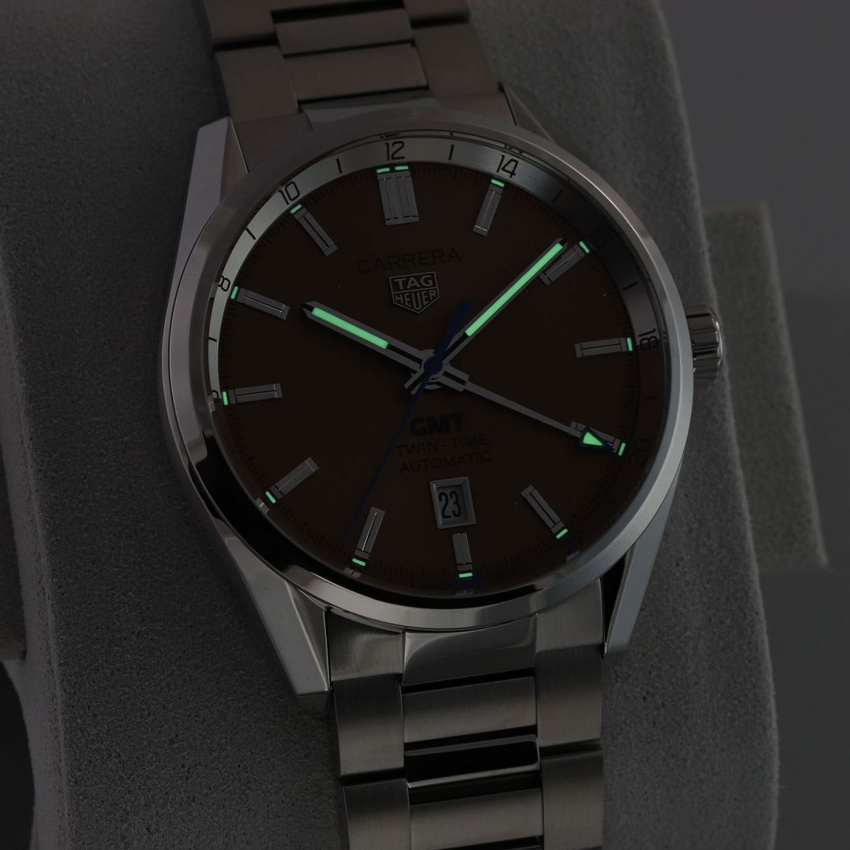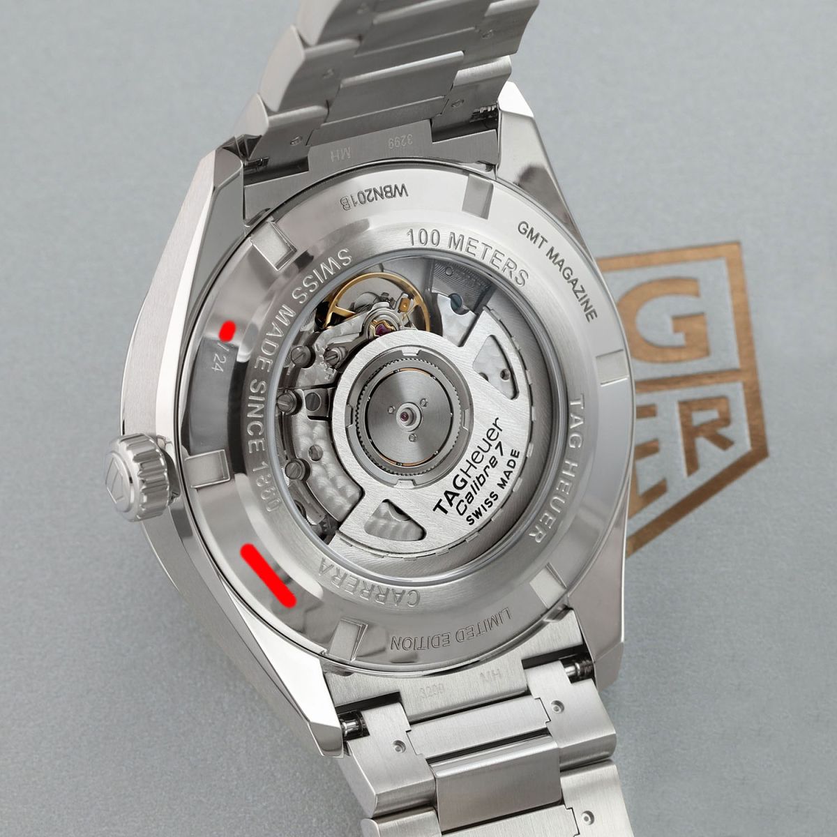 Tag Heuer Carrera Twin-Time Automatic GMT, limited & numbered edition of only 24 pieces. commemorating the 24th anniversary of GMT magazine. The case back is engraved with "GMT MAGAZINE - LIMITED EDITION - xx/24"