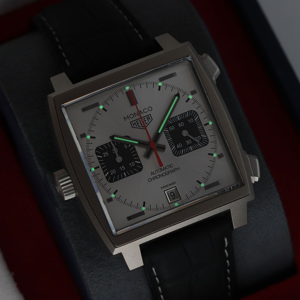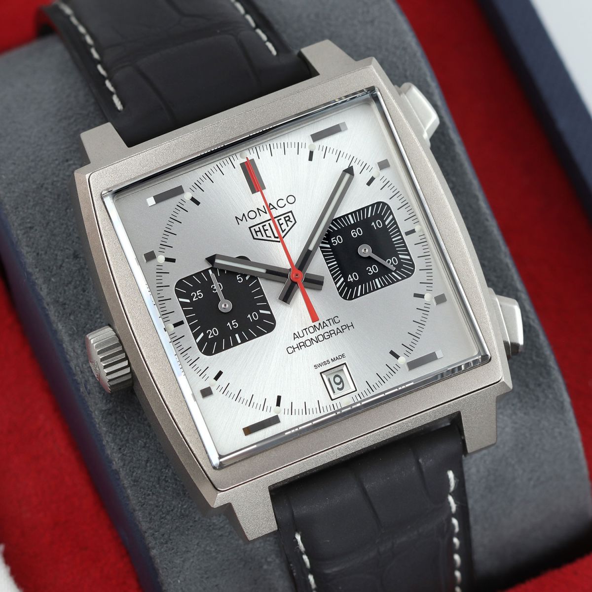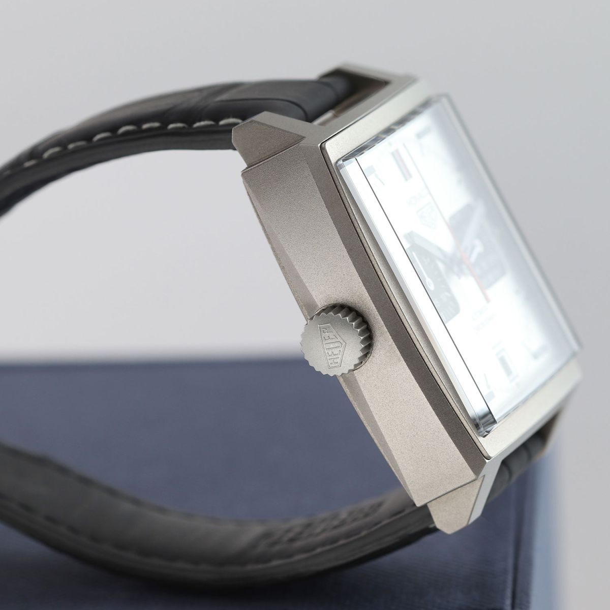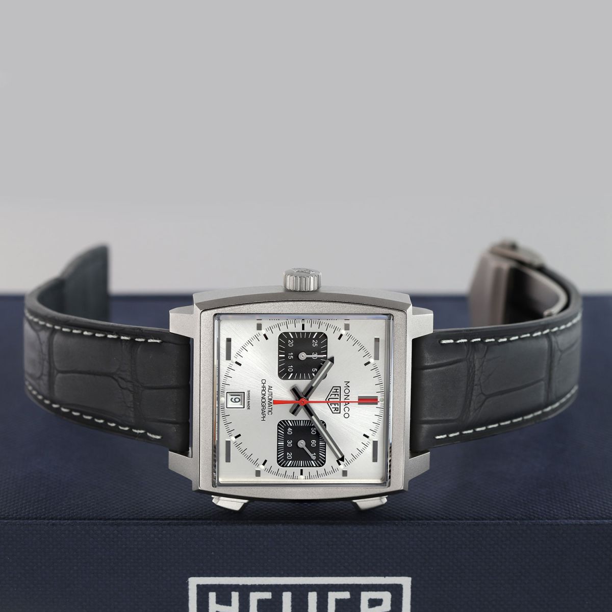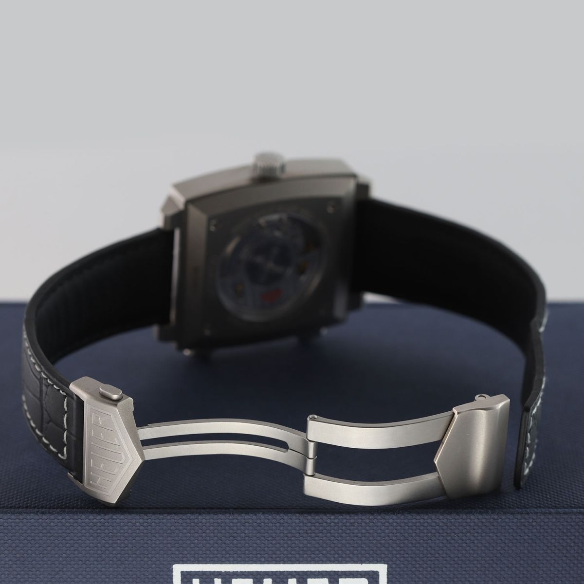 Strap: Fitted on its original Tag Heuer matte black alligator leather strap with contrasting white stitching and a titanium deployant buckle. The strap is in excellent near new condition with the majority of its wear lifespan remaining. We would grade this strap in 97% overall condition.