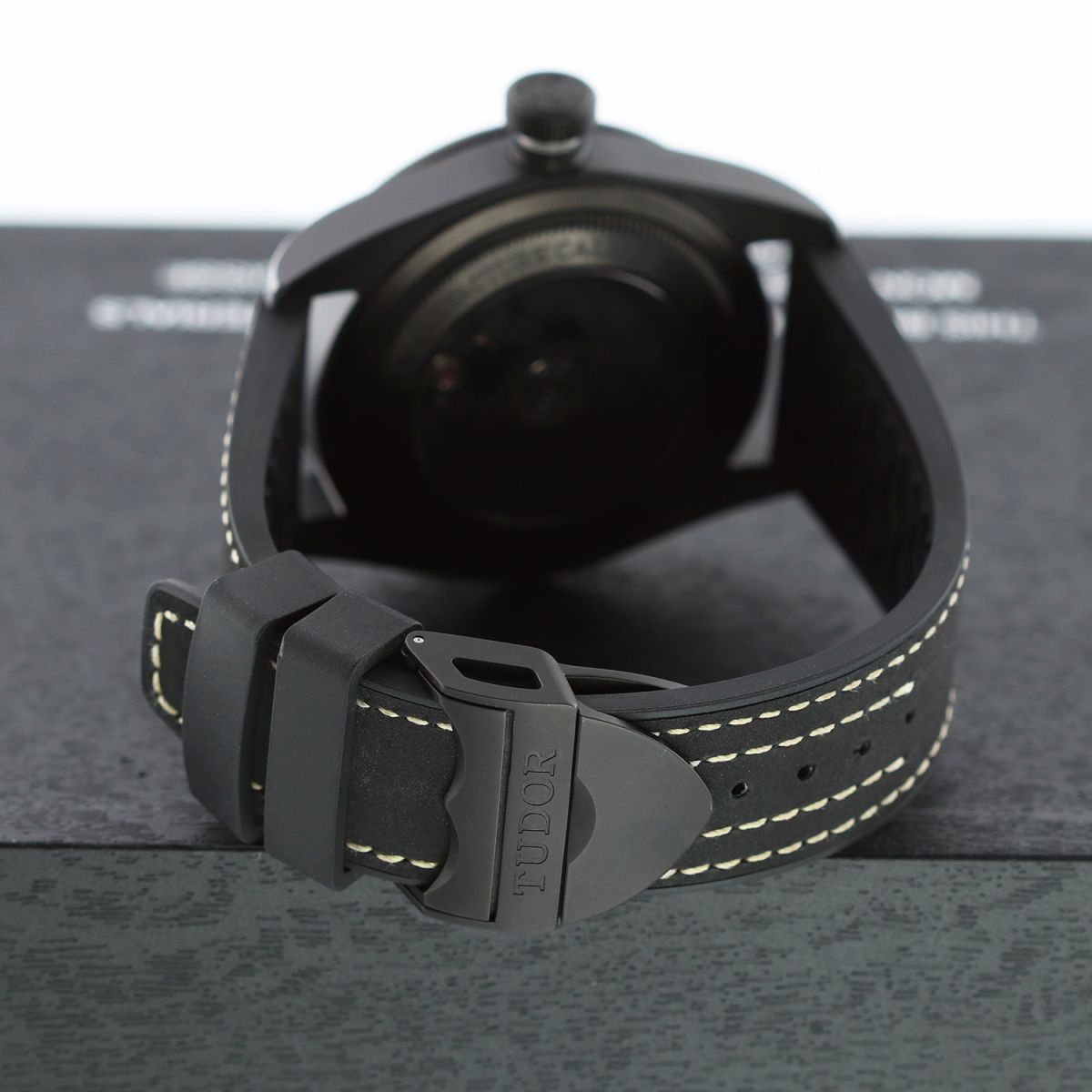 - Fitted with its original Tudor black calfskin leather with black rubber lining strap and with a matte black PVD coated stainless steel deployant buckle. The strap is excellent new brand new condition, worn a handful of times at most with its full wear lifespan remaining. We would be comfortable rating this strap in 99% overall condition.