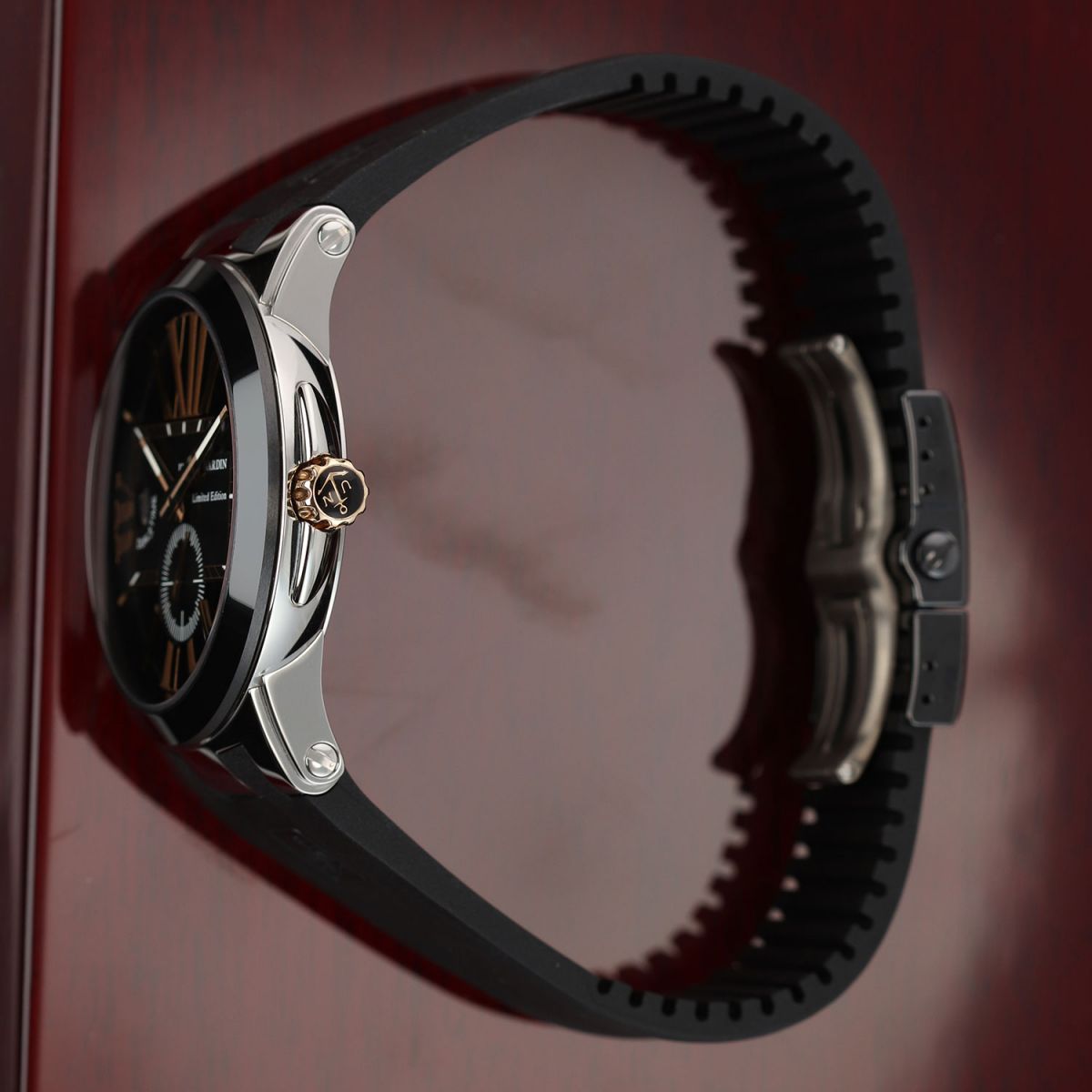 Limited edition of 99 pieces featuring rose gold dial accents & a rose gold crown.