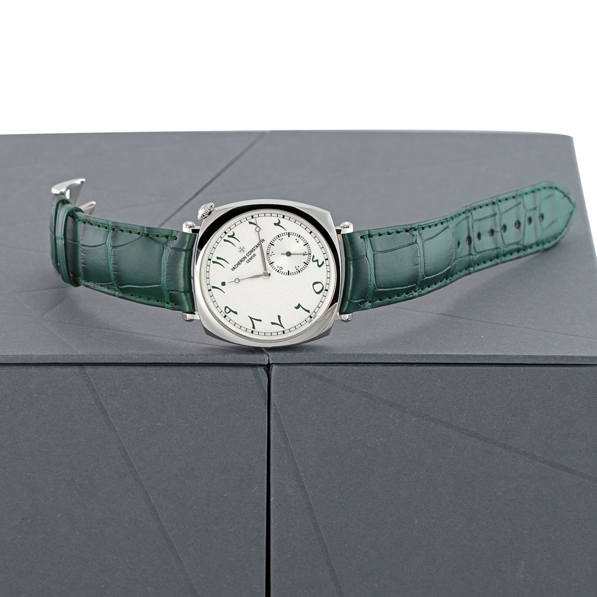 The Vacheron Constantin Historiques American 1921 is one of the most distinctive designs in fine watchmaking. Originally created in 1921 for the American market, it features a cushion-shaped case, a diagonally rotated dial for easy reading while driving, and a crown uniquely positioned between 1 and 2 o’clock.This particular version is an exceptionally rare regional edition created primarily for the Middle Eastern market, distinguished by striking green Eastern Arabic numerals and a matching green strap. Produced in very limited quantities and seldom seen outside the region, it stands among the most elusive modern variations of the iconic 1921.