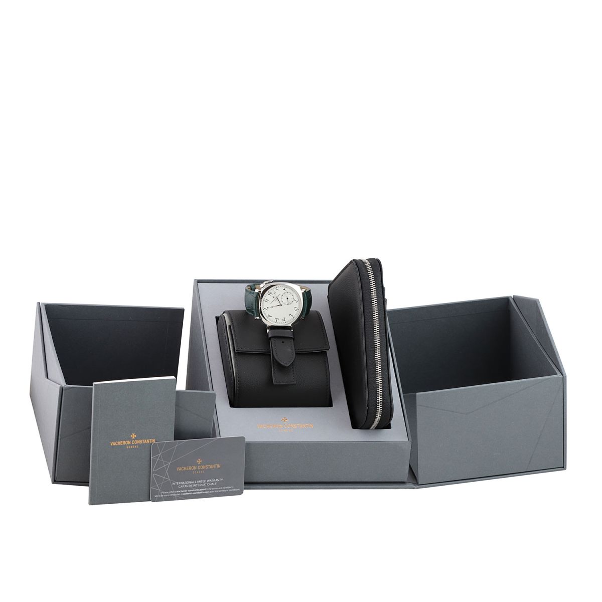 Strap: Fitted on its original Vacheron Constantin green alligator leather strap with a solid 950 platinum tang buckle. The strap is in excellent, near new condition with its full wear lifespan remaining. We would be comfortable rating the strap as in 98%+ condition.