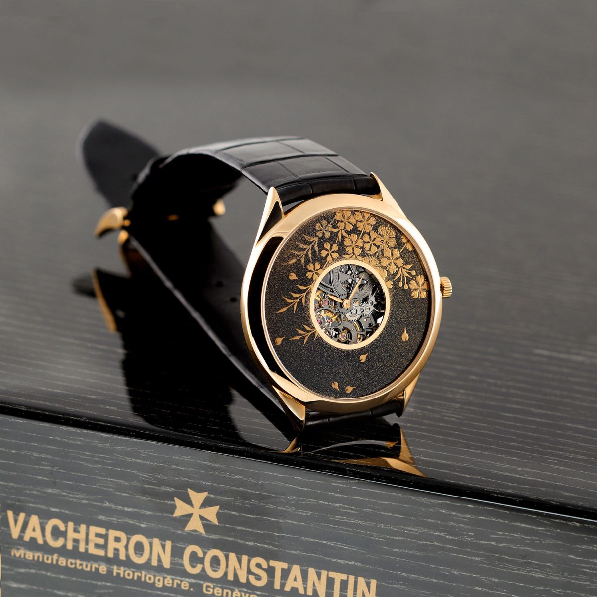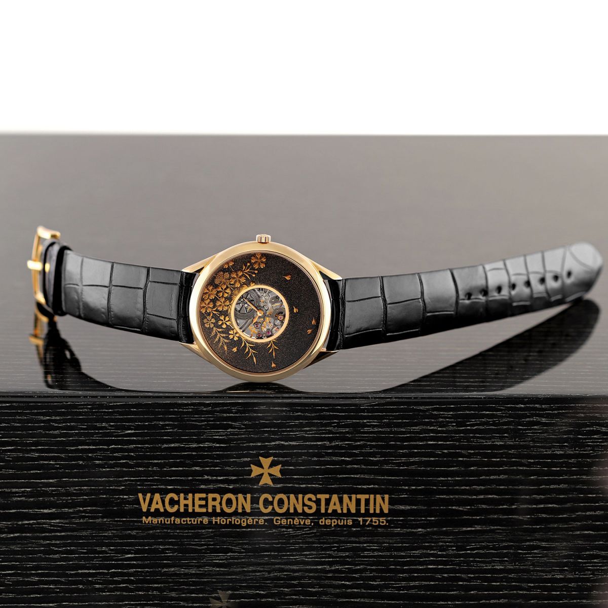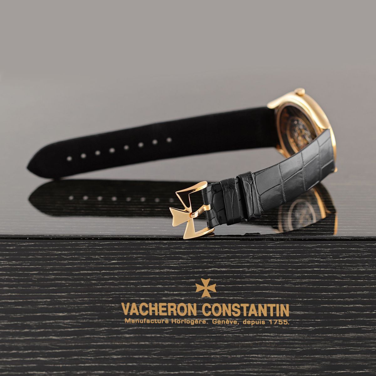 Strap: Fitted on its original Vacheron Constantin rolled-edge black alligator leather strap with a solid 18kt rose gold buckle. The strap is unworn with its full wear lifespan remaining.